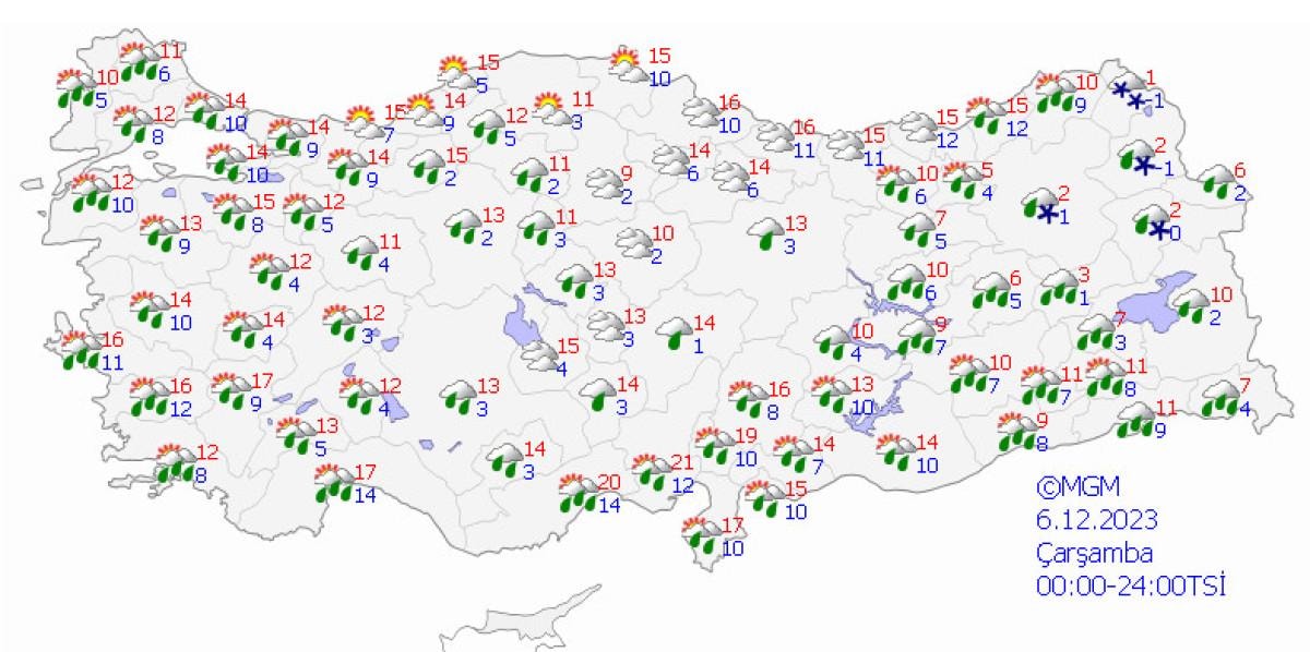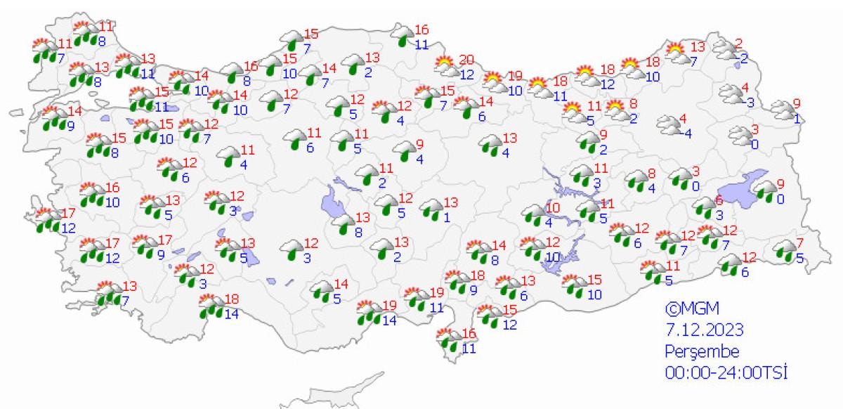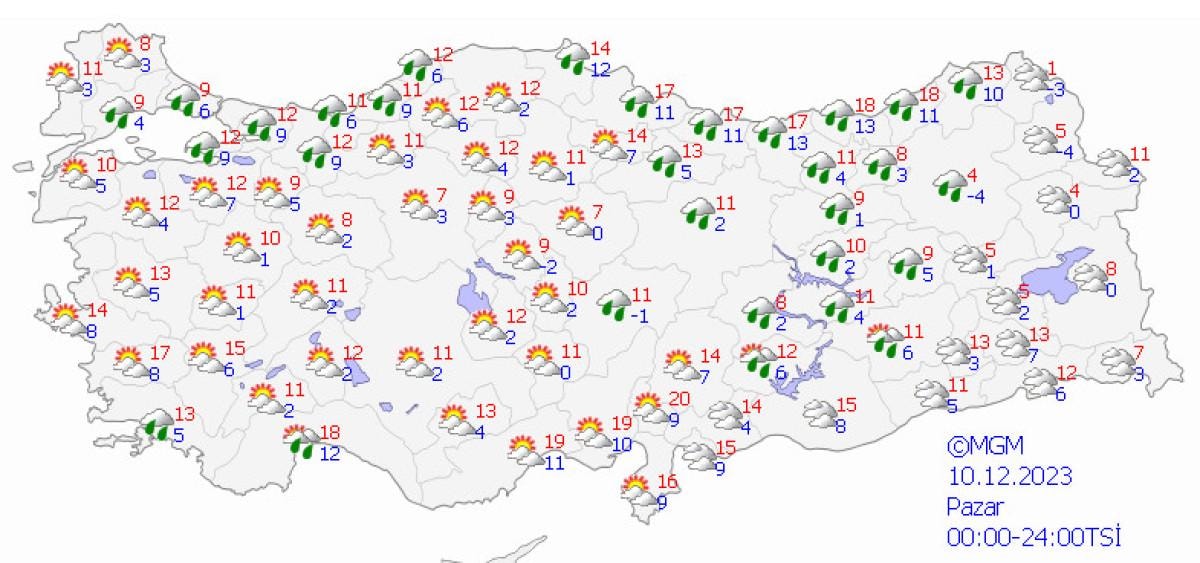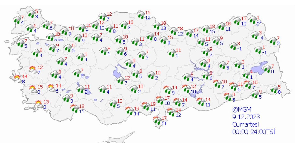 Hava sıcaklıklarının Trakya'da 2 ila 4 derece üstünde, Doğu Karadeniz'de 3 ila 5 derece altında, diğer yerlerde mevsim normalleri civarında seyretmesi bekleniyor.