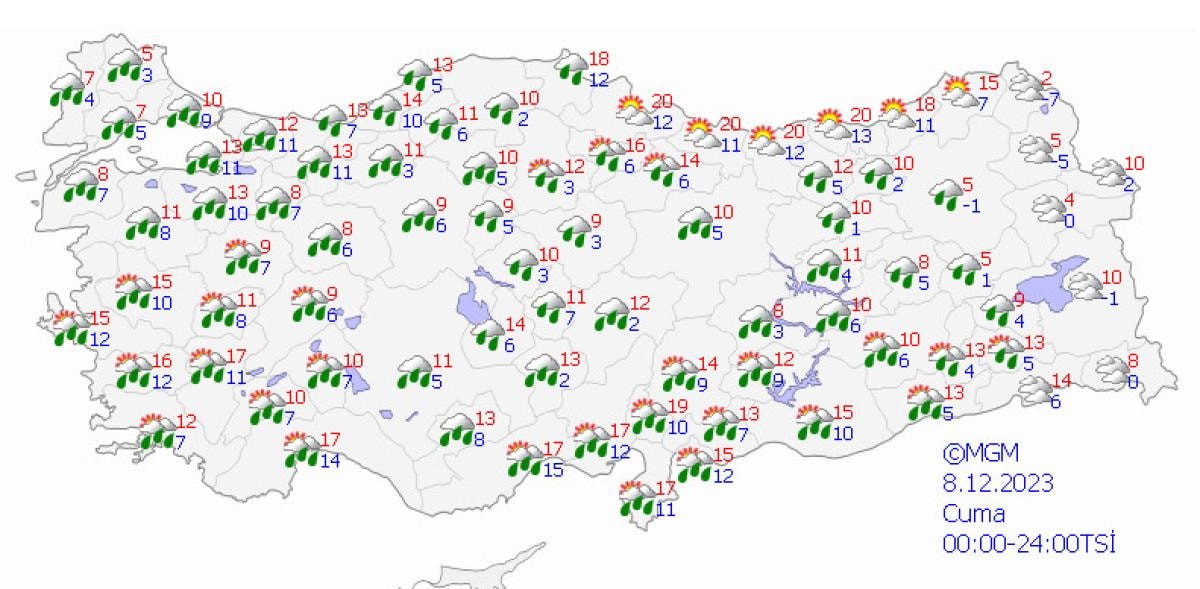 Sıcaklıkların cuma gününden itibaren ise batı bölgelerde azalarak mevsim normalleri altına ineceği tahmin ediliyor.