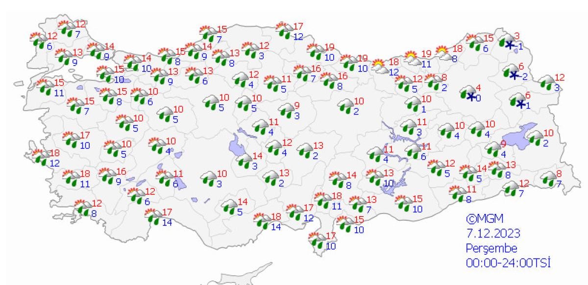MGM tarafından yapılan son değerlendirmelere göre, ülkenin batı kesimlerinin parçalı ve çok bulutlu, Kırklareli ve Muğla çevreleri, Çanakkale'nin güneyi ile Balıkesir’in batı kıyılarının sağanak ve gök gürültülü sağanak yağışlı, havanın etkisine girmesi bekleniyor.