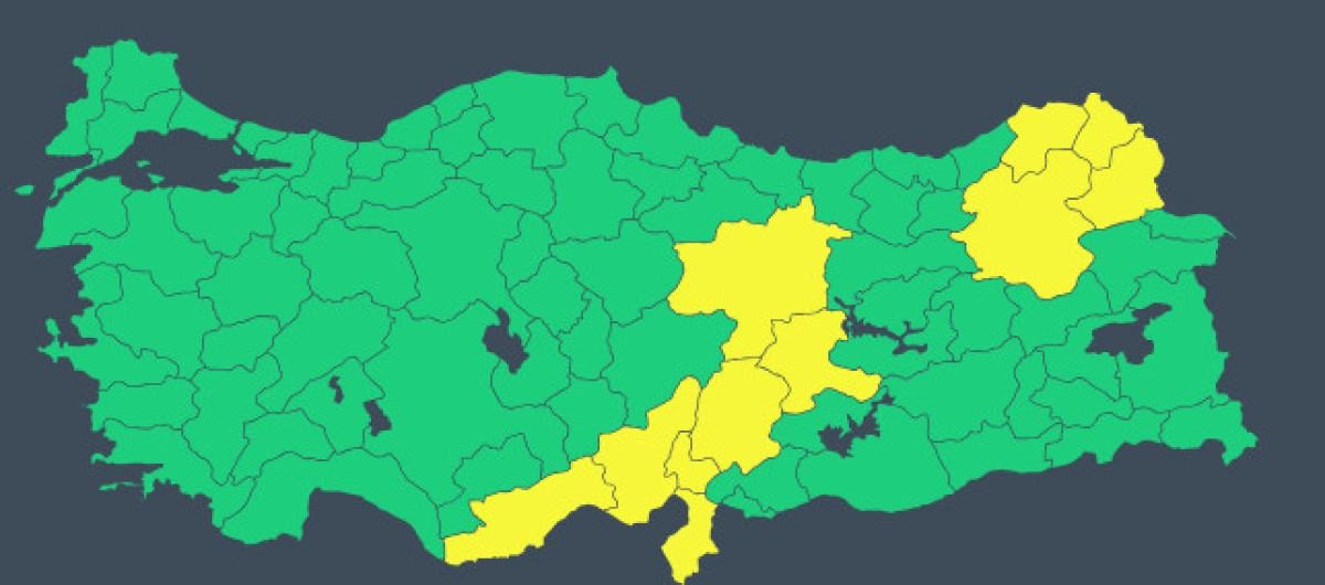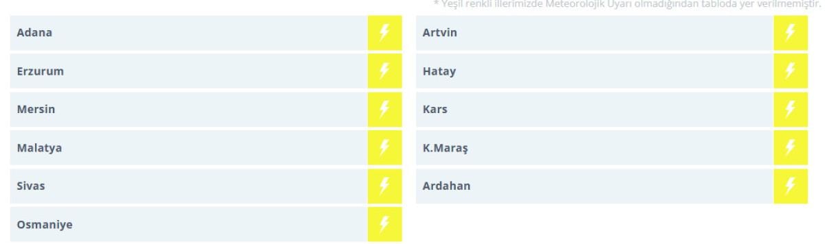 Sarı kodla uyarılan iller şu şekilde sıralandı:
