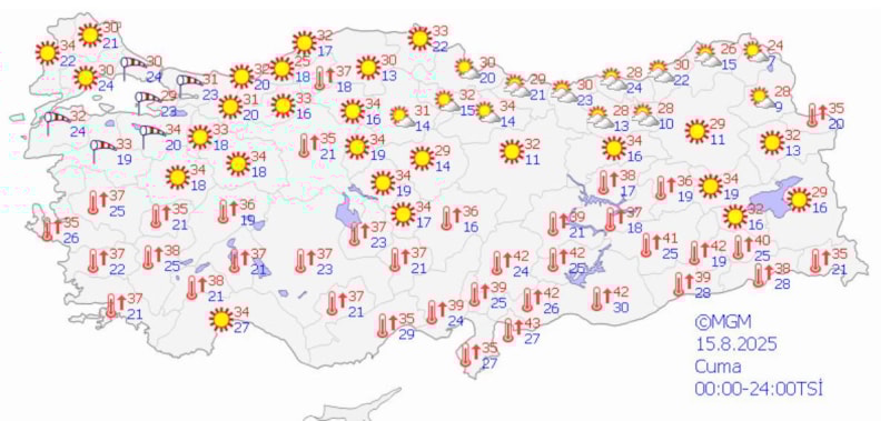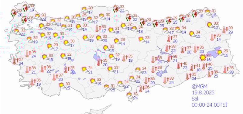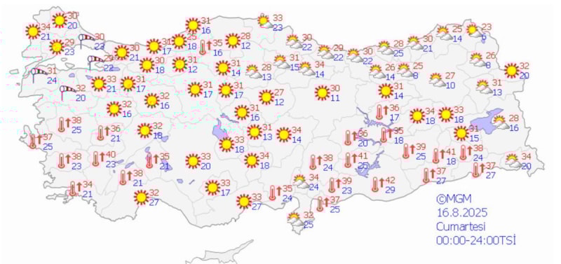 Halen devam etmekte olan kuvvetli rüzgar ve fırtınanın, 16.08.2025 Cumartesi günü gece saatlerine kadar, Marmara Bölgesi ile İzmir ve Manisa'nın kuzey kesimlerinde kuzey ve kuzeydoğu yönlerden kuvvetli rüzgar ve fırtına (40-60 km/saat, yer yer 60-80 km/saat) şeklinde eseceği beklendiğinden ulaşımda aksamalar, çatı uçması, ağaç devrilmesi gibi olumsuzluklara karşı dikkatli ve tedbirli olunmalıdır.