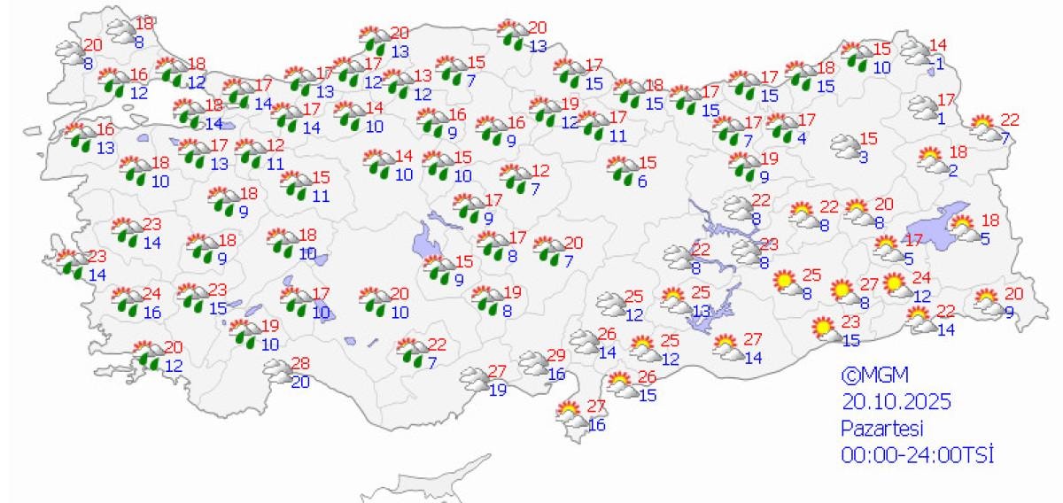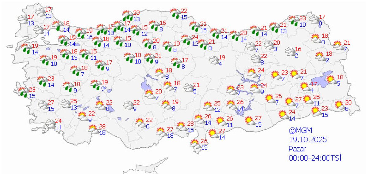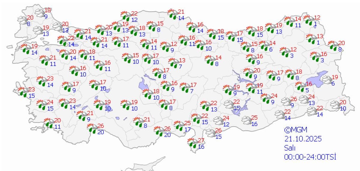 - Türkiye genelinde yağışlı hava etkisini gösterirken, sıcaklıkların hissedilir derecede düşeceği belirtildi.