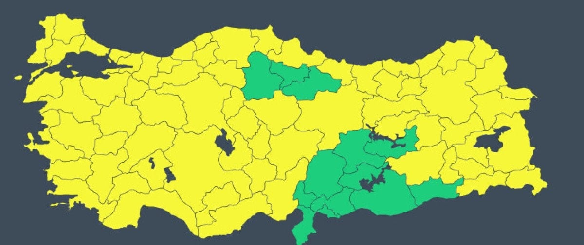 MGM, Çorum, Amasya, Tokat, Hatay, Kilis, Osmaniye, Gaziantep, Kahramanmaraş, Adıyaman, Şanlıurfa, Mardin, Malatya ve Elazığ dışındaki tüm kentleri sarı kod yayınlayarak kuvvetli yağış, fırtına ve çığ tehlikesine karşı uyardı.