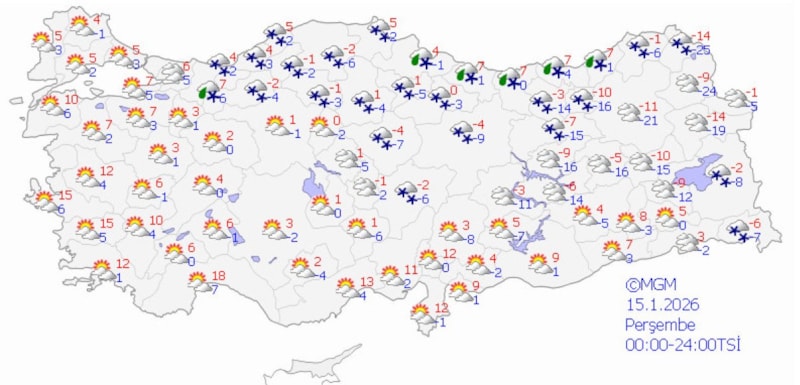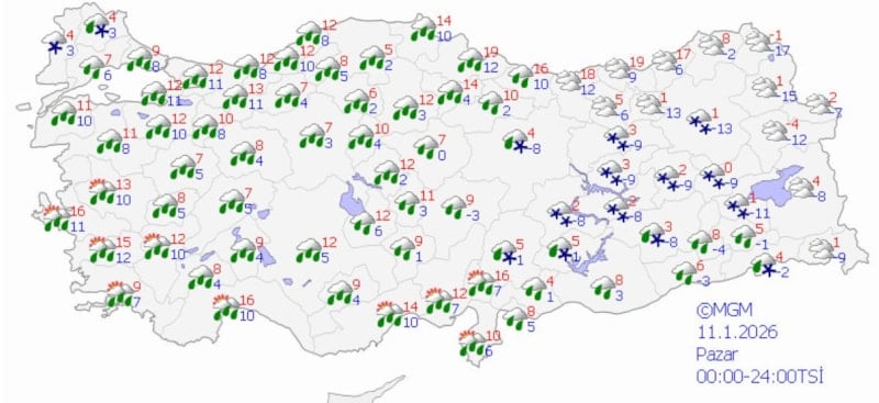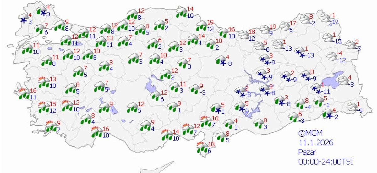 - Pazar günü hava sıcaklıklarının 10 dereceye kadar düşmesi ve birçok ilde kar yağışı başlaması bekleniyor.