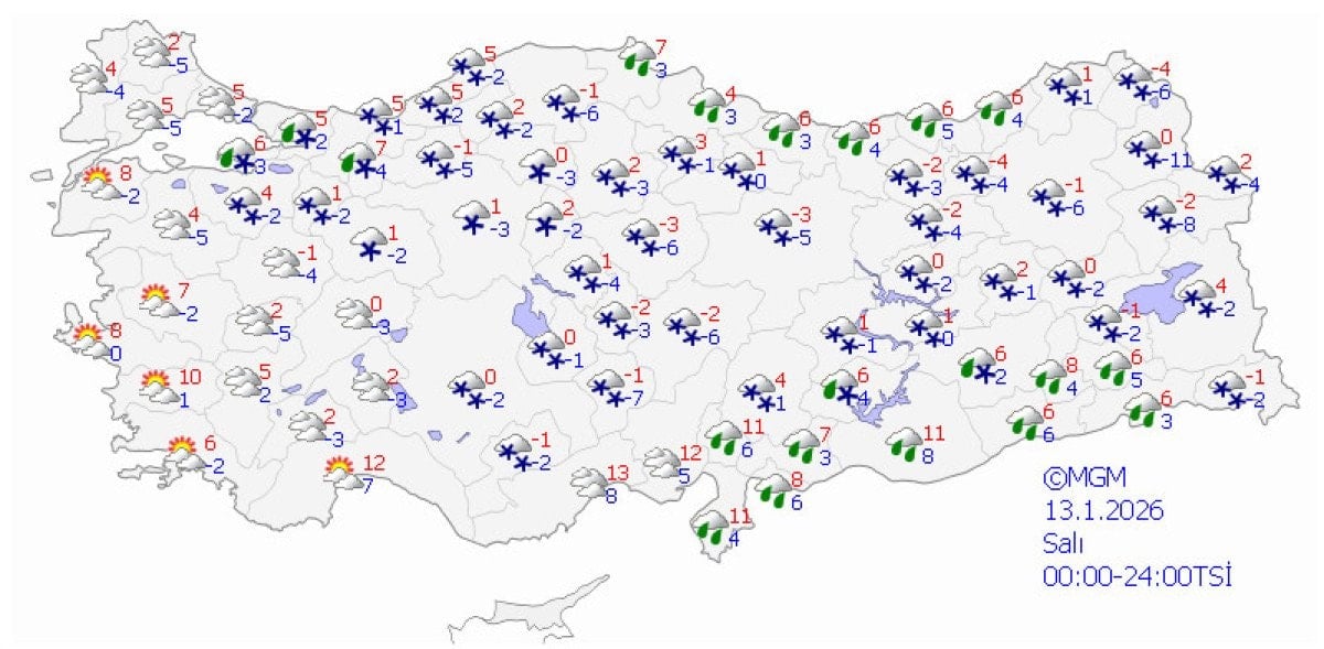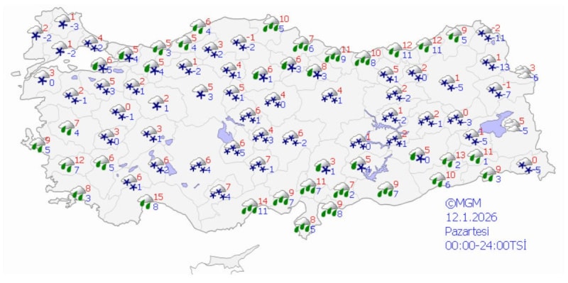 - Akşam saatlerinde batı illerinde kar yağışı etkili olacak, pazartesi ve salı günleri İstanbul'da kar yağışı devam edecek.