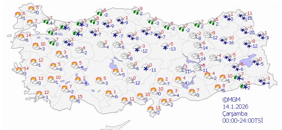 Akşam saatlerinde ise özellikle batı illerinde hava sıcaklığı 5 ila 7 derece birden düşecek. Yeni haftada ise yurdun büyük bölümünde kar yağışı görülecek.