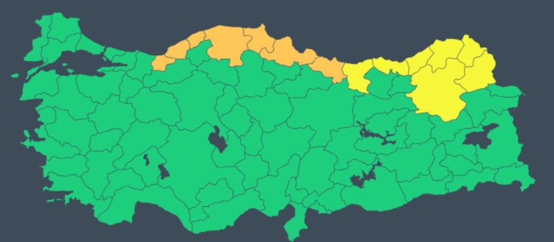 Meteoroloji tarafından 14 ile ise turuncu ve sarı kodlu uyarı yapıldı. Sarı kodlu uyarı yapılan iller; Artvin, Giresun, Rize, Ardahan, Erzurum, Kars ve Trabzon olurken, Kastamonu, Sinop, Zonguldak, Ordu, Samsun, Bartın ve Düzce'ye ise turundu alarm verildi.