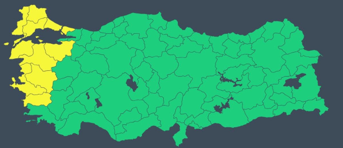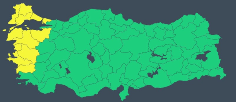 Yapılan değerlendirmelere göre, 10 il için sarı kodlu uyarı verildi.
