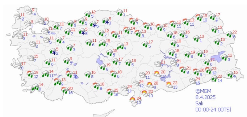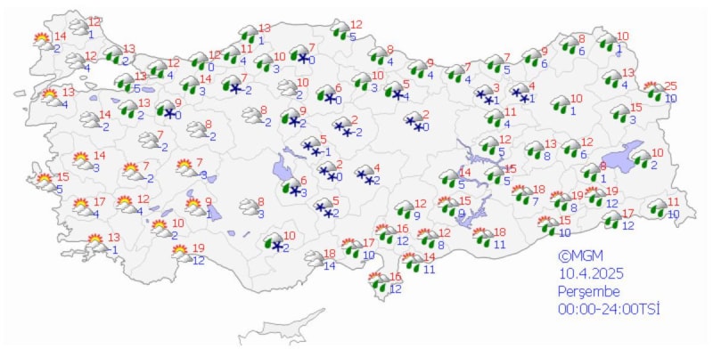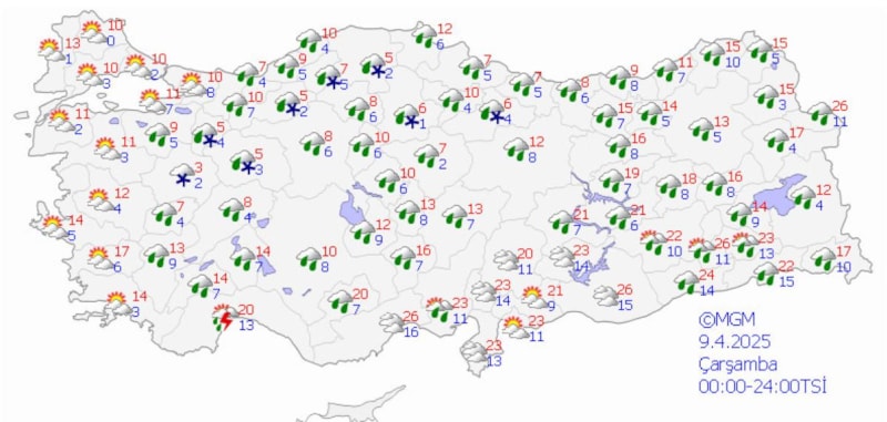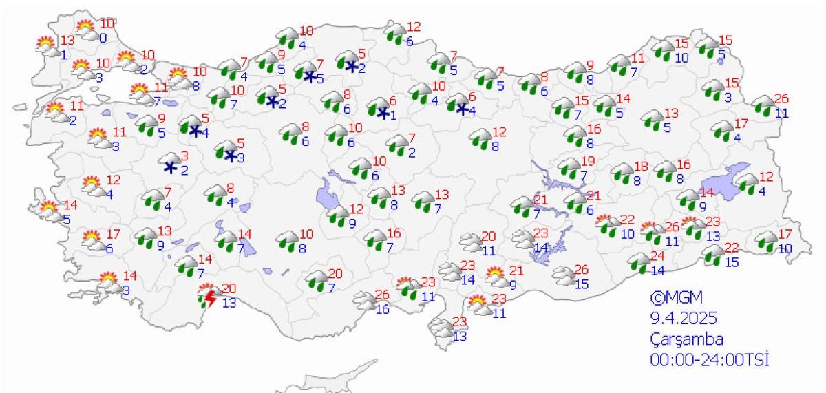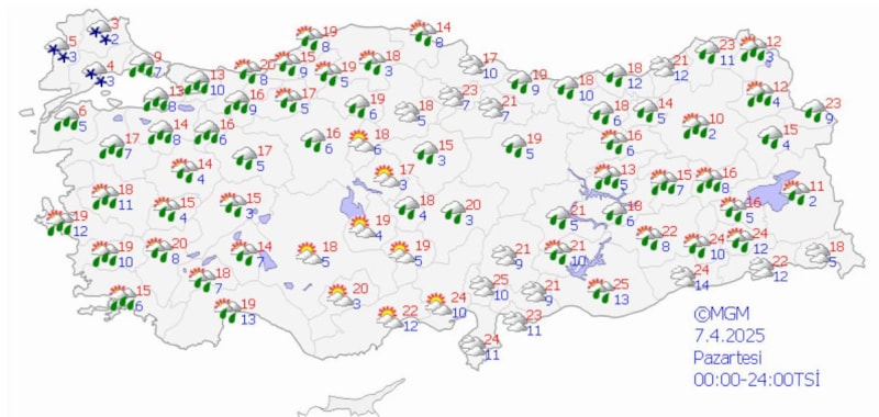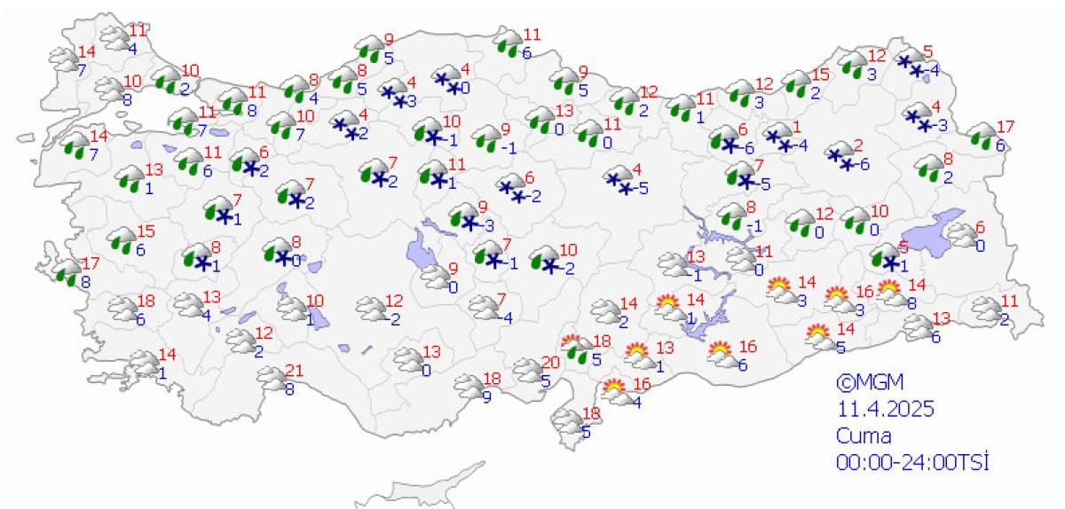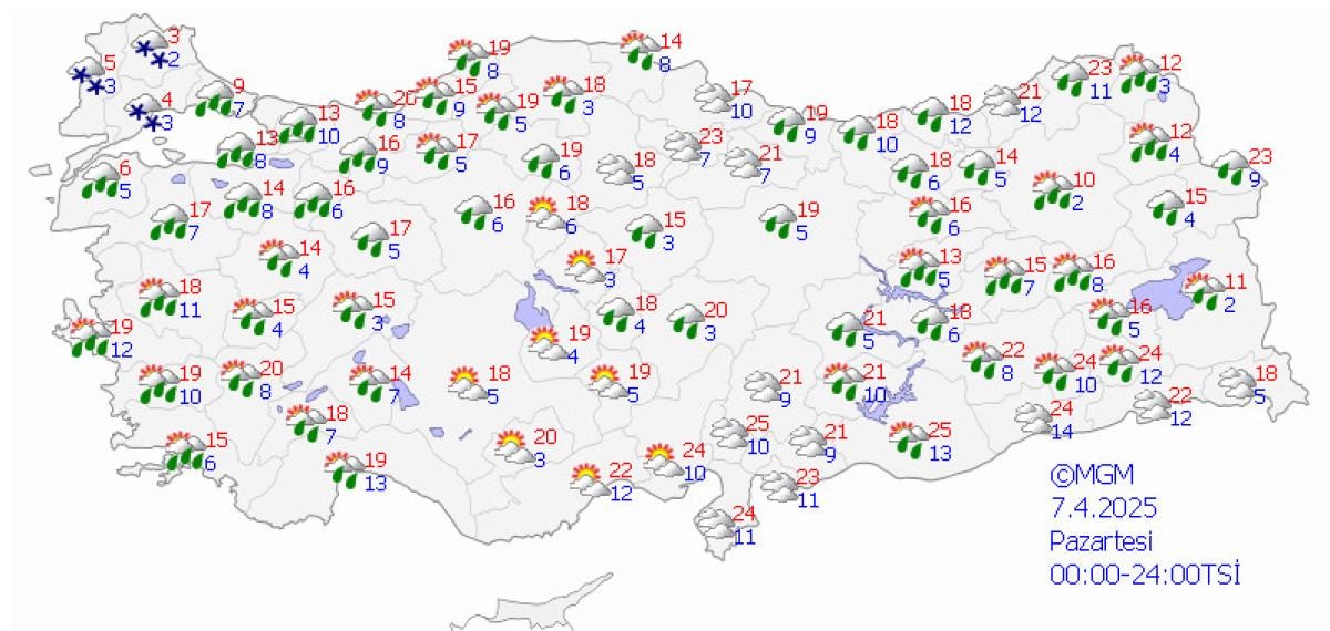 Meteoroloji Genel Müdürlüğü, yeni haftaya ilişkin hava durumu tahminlerini açıkladı.