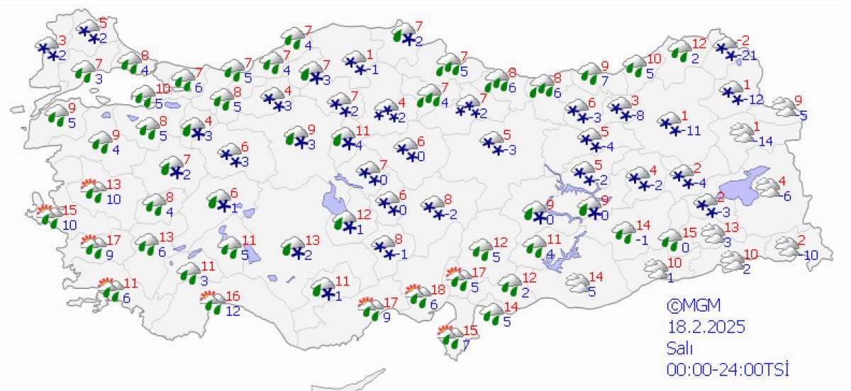 KARLA KARIŞIK YAĞMUR VE KAR ETKİLİ OLACAK
