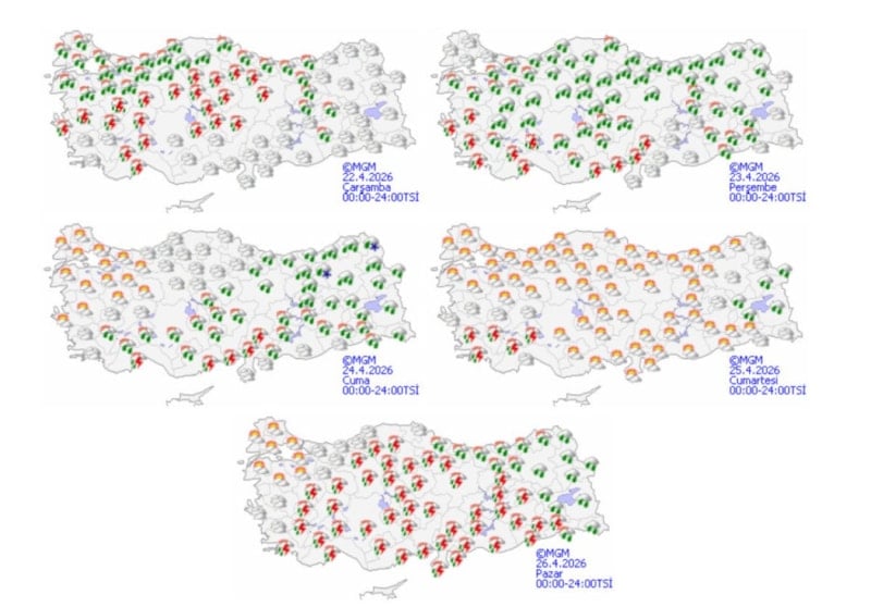 Sıcaklıkların çarşamba günü mevsim normallerinin 4 ile 6 derece altına düşeceği, cuma günü ise tekrar mevsim normallerine yükseleceği öngörülüyor.