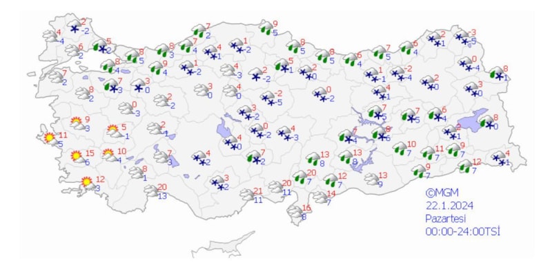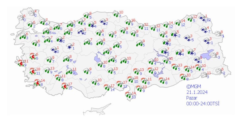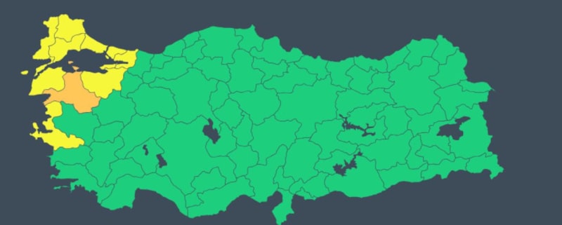 Meteoroloji Genel Müdürlüğü yaptığı açıklamada, yurdun kuzey batısı "turuncu" ve "sarı" kodla uyardı.