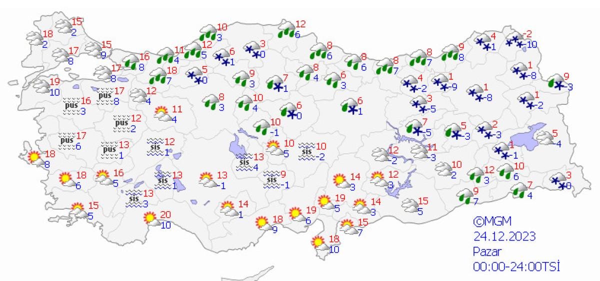 “Doğu Karadeniz’de rüzgarın 22 Aralık’ta Cumartesi günü ilk saatlerde batısında, öğle saatlerinden itibaren genelinde batı ve kuzeybatı yönlerinden 6-8 kuvvetlerinde (50-75 km/sa) fırtına, açıklarında 9 kuvvetinde (90 km/sa) kuvvetli fırtına şeklinde eseceği tahmin ediliyor. Fırtınanın 23 Aralık Pazar günü öğle saatlerinde etkisini kaybetmesi bekleniyor”