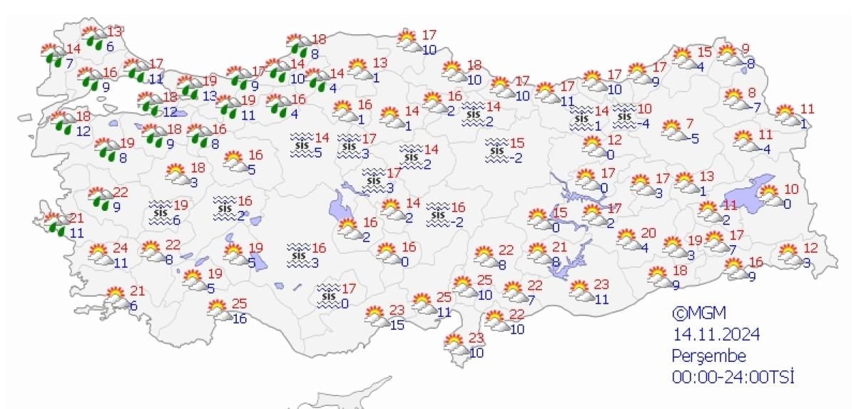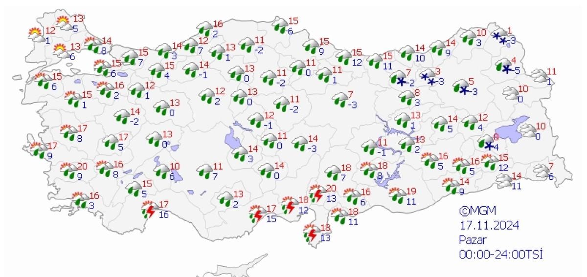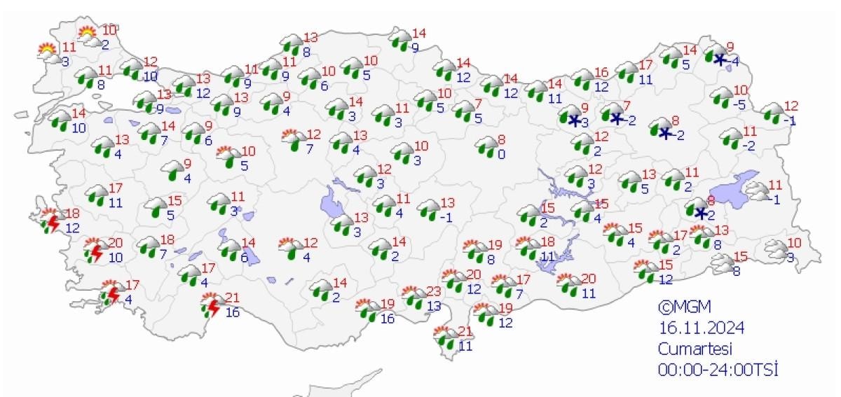 Meteoroloji Genel Müdürlüğü (MGM), güncel hava durumu tahmin raporunu yayınladı.