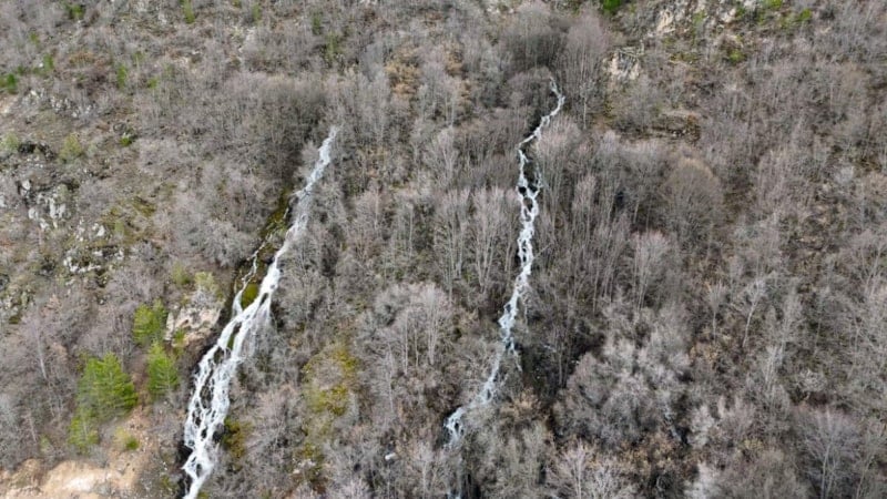 İkisu-Şiran kara yolu güzergahındaki köyün her iki yamacında, nisan ayı ile birlikte devasa su kaynakları aynı anda gün yüzüne çıkıyor.