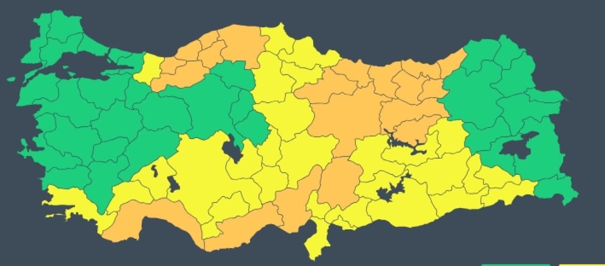 Meteoroloji Genel Müdürlüğü (MGM), yurt genelinde 29 ile sarı, 20 ile ise turuncu kodlu uyarı yaptı.