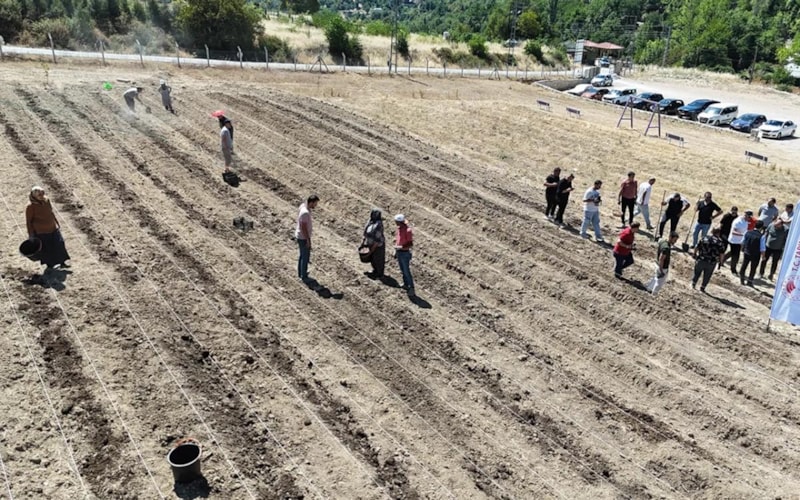 Safranbolu’nun Gayza köyü Safranova bahçesinde gerçekleştirilen ekim çalışmaları kapsamında 150 bin safran soğanı toprakla buluşturuldu.