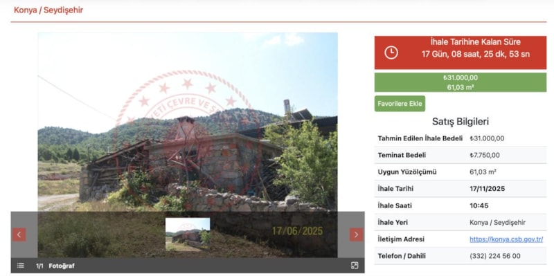 İhale, 17 Kasım 2025 tarihinde saat 10.45’te gerçekleştirilecek.