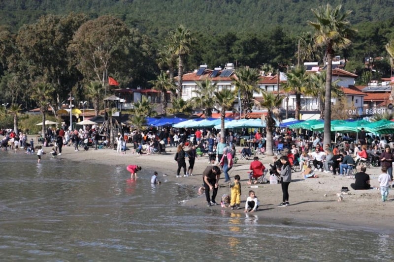 Sahilde adeta insan seli oluşurken, oturacak yer bulmak neredeyse imkansız hale geldi.