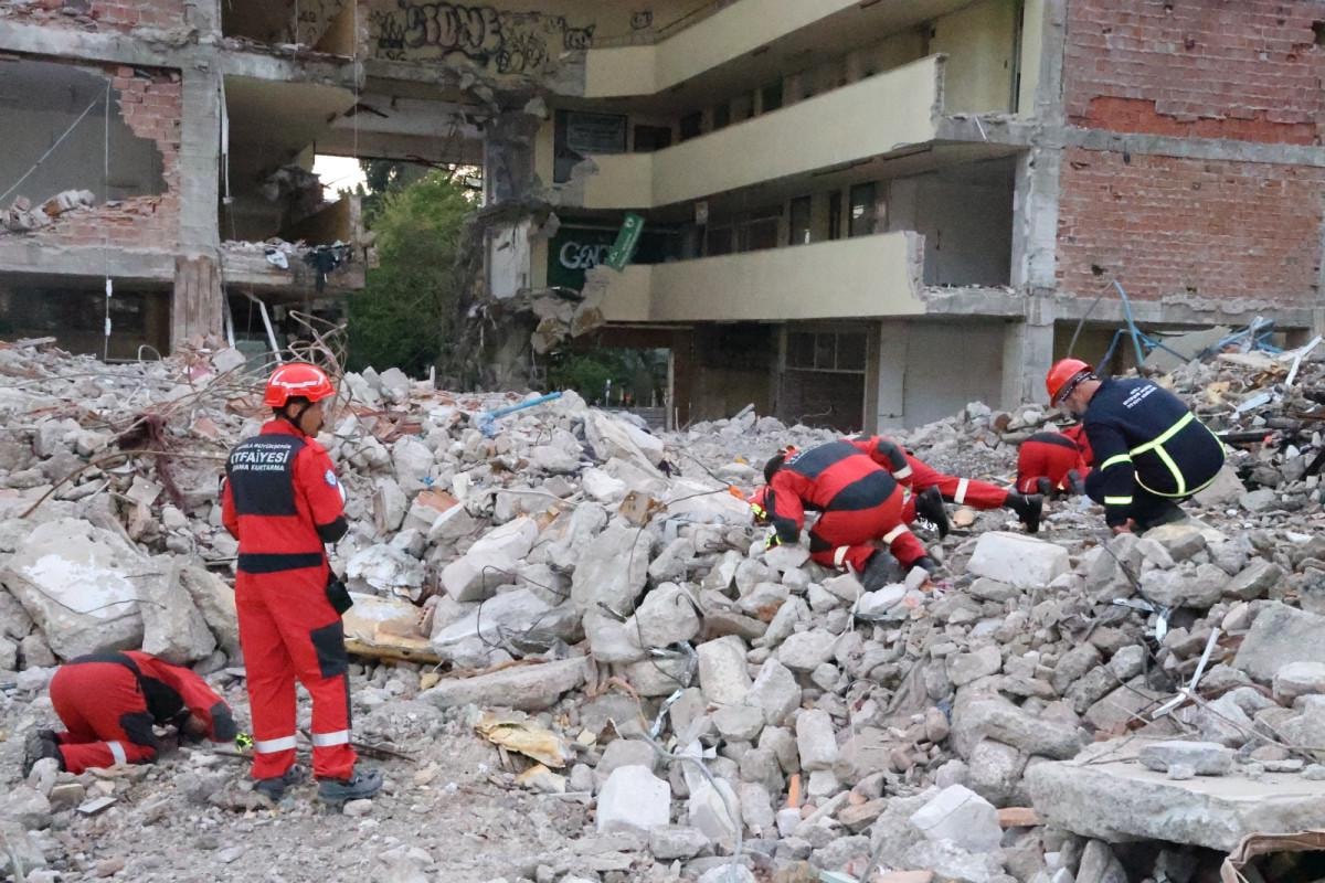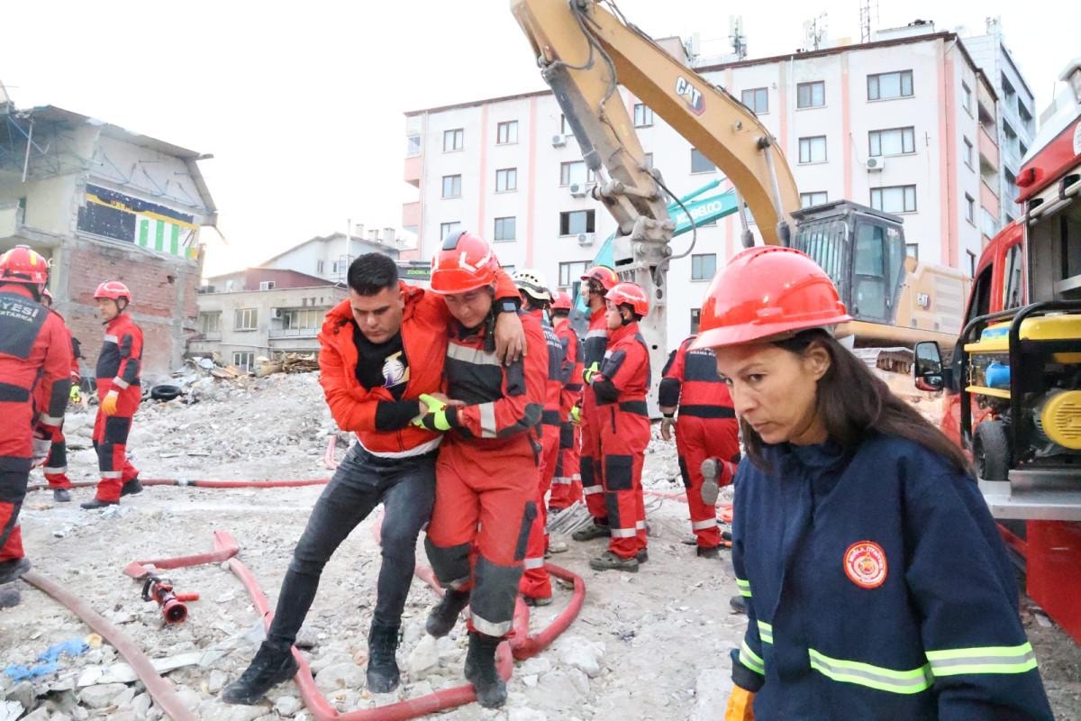 Muğla'da senaryo gereği deprem sonrası iş hanında meydana gelen göçük ve yangın sonrası bölgeye çok sayıda itfaiye yangın söndürme ve arama kurtarma ekibi sevk edildi.
