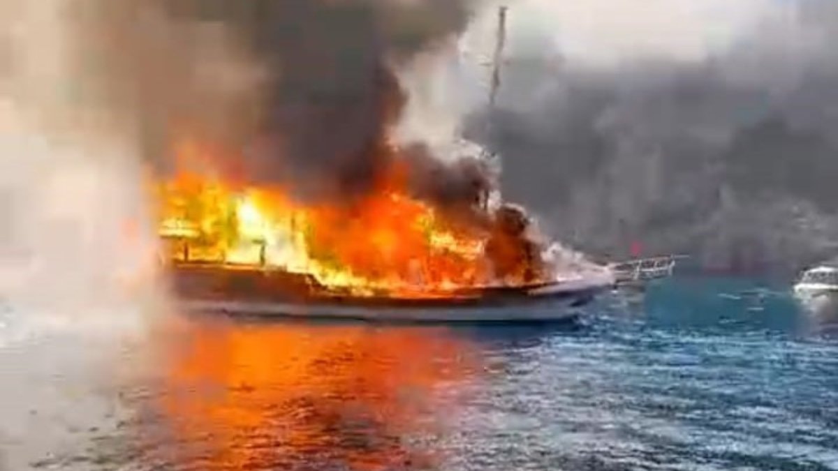 Bu arada tamamen yanan gezi teknesinin denizden tahliyesi için de Liman Başkanlığı’ndan bölgeye römorkör sevk edildiği belirtildi.