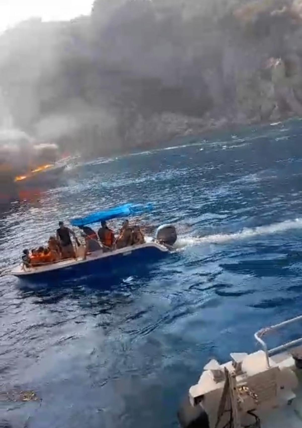 Kısa sürede tüm tekneyi saran alevlerden yolcular ve gemi mürettebatı denize atlayarak kurtuldu. Çok sayıda deniz aracının bulunduğu bölgede denize atlayanların tamamının sağ olarak kurtarıldığı öğrenildi.