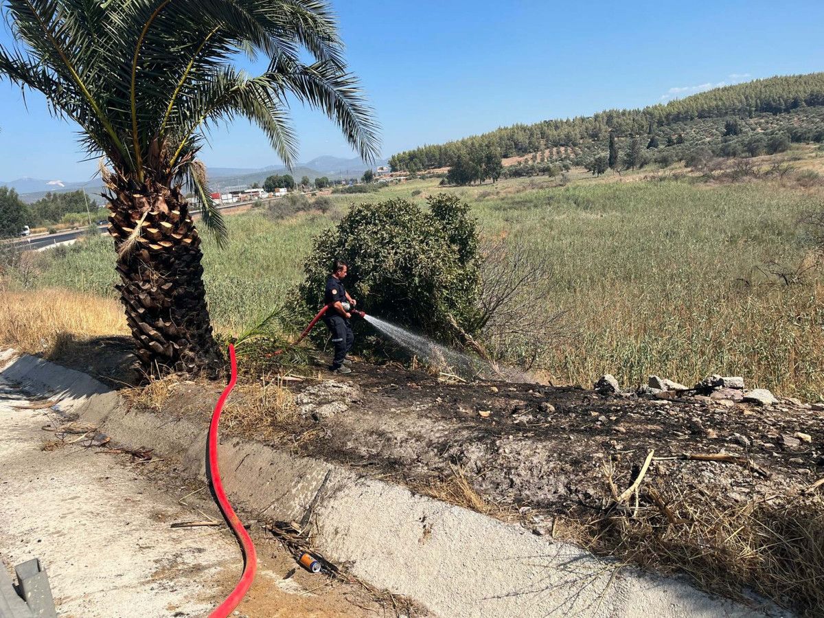 Muğla'nın Milas ilçesi Güllük Kavşağı'nda saat 14.30 sıralarında yangın çıktı.