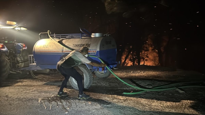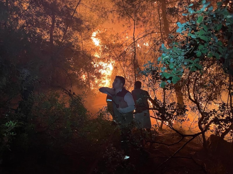Ekipler, rüzgarın etkisiyle yayılan yangını kontrol altına almak için gece boyu çalışma yürüttü.