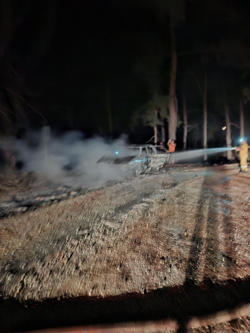 Hızla olay yerine ulaşan ekipler, alev topuna dönen araç yangınını ormanlık alana sıçramadan söndürmeyi başardı.
