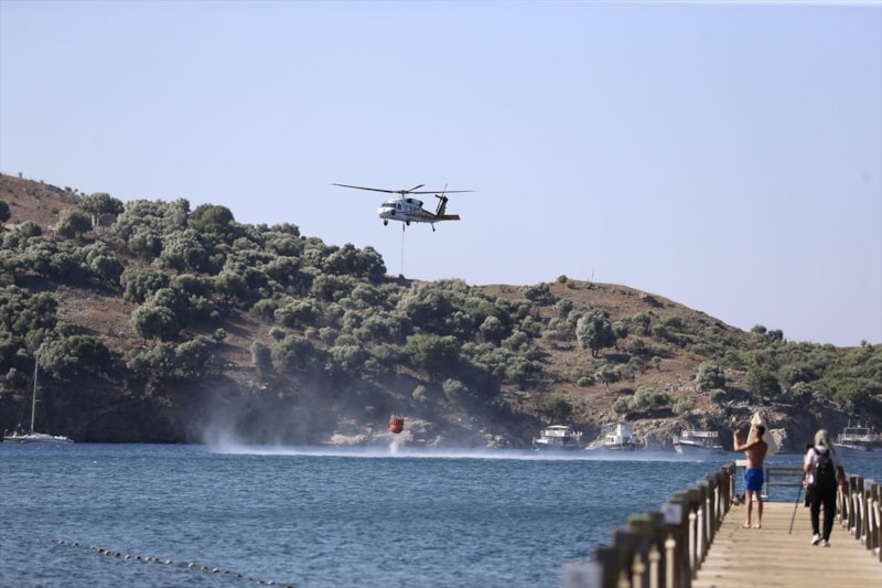 İhbar üzerine bölgeye Muğla Orman Bölge Müdürlüğüne bağlı hava ve kara araçları sevk edildi.