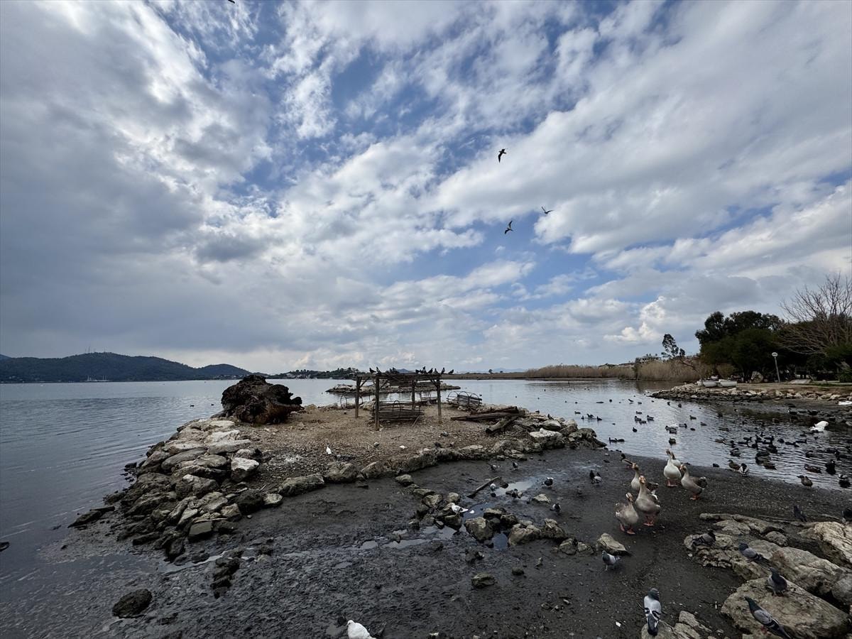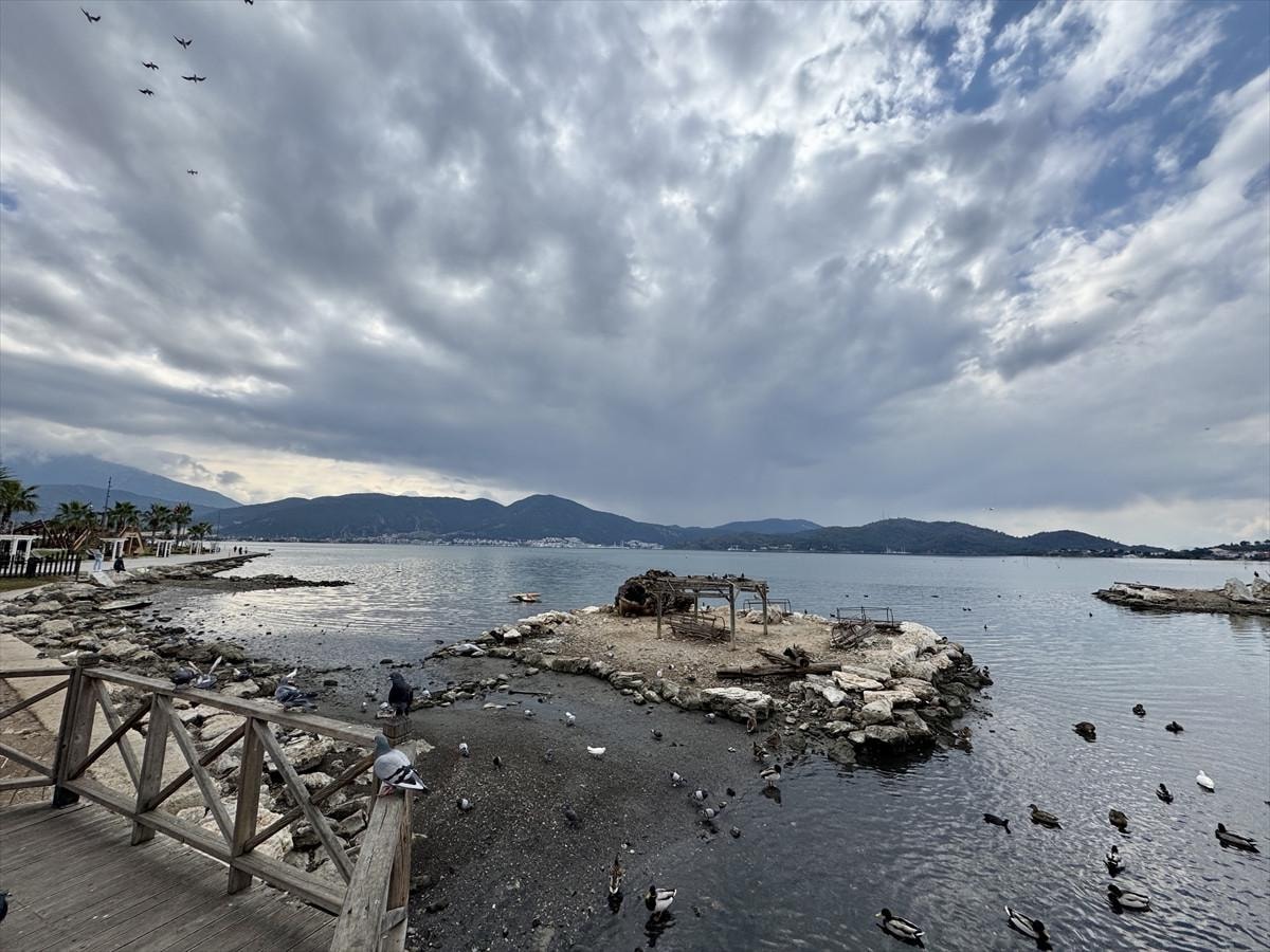 Kıyıya yakın yapay Ördek Adası'nda suyun çekilmesiyle karayla bağlantı oluştu.