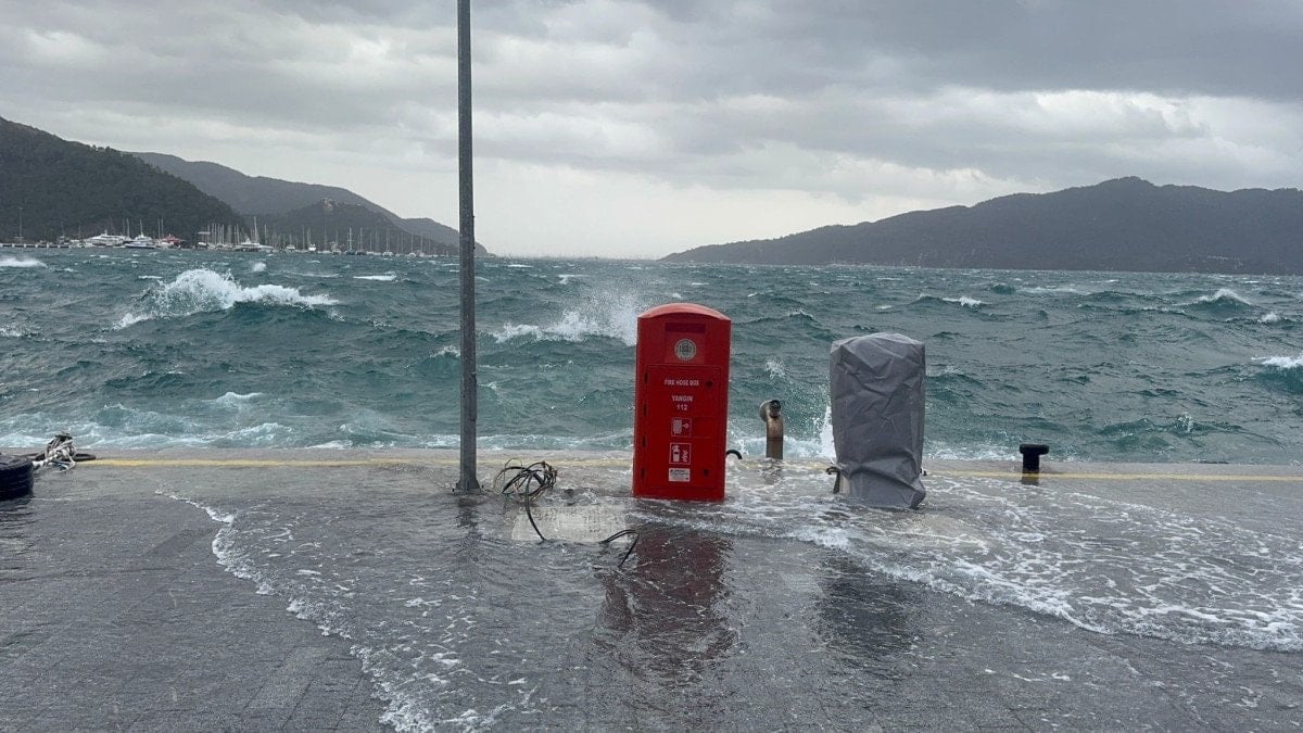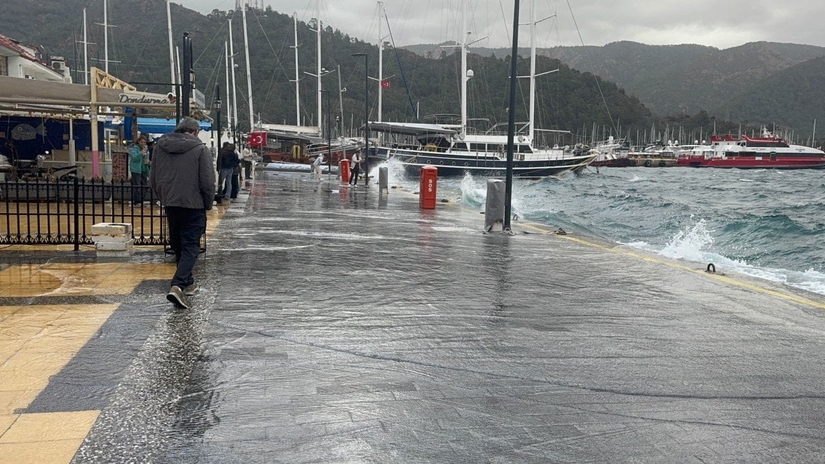 - Muğla'nın Marmaris ilçesinde etkili olan şiddetli lodos, saatte 50 km hıza ulaşarak kıyı şeridinde olumsuzluklara neden oldu.