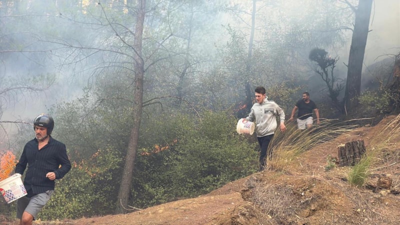 İhbar üzerine bölgeye Orman Bölge Müdürlüğü'nden görevli çok sayıda ekip sevk edildi. Alevler rüzgarın da etkisiyle Pınar ve Sazak mahallelerine de ulaştı.