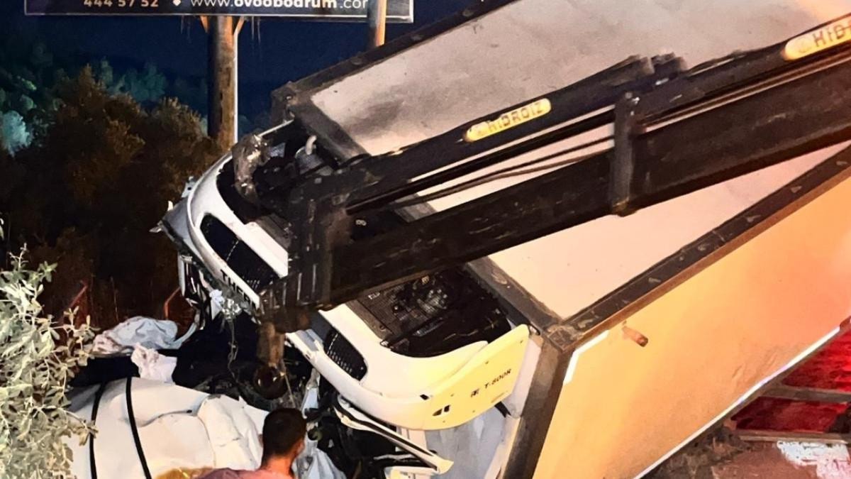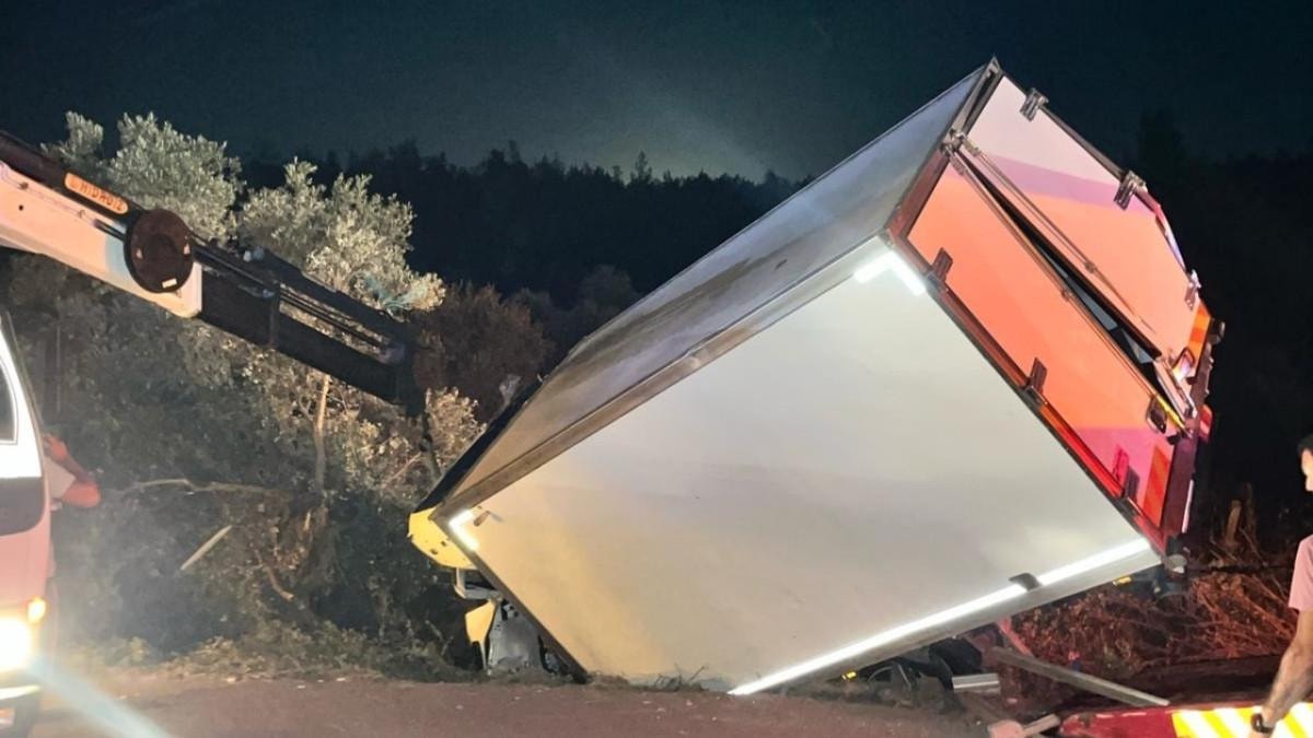 Muğla’nın Milas ilçesinde Kemikler Mahallesi mevkiinde saat 19.00 sıralarında, Aydın Öz (53) idaresindeki kamyon sürücüsünün direksiyon hakimiyetini kaybetmesi sonucu yoldan çıkarak devrildi.