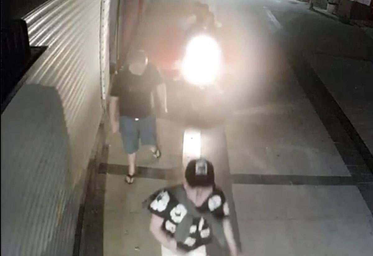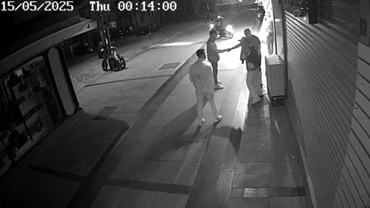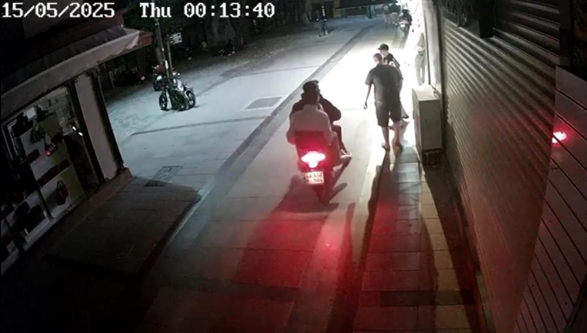 Görüntülerde, yolda yürüyen 2 turiste, motosiklet ile yaklaşan 3 şüphelinin darp ve gasp etmesi ile turistlerin olay yerinden kaçışları yer aldı.