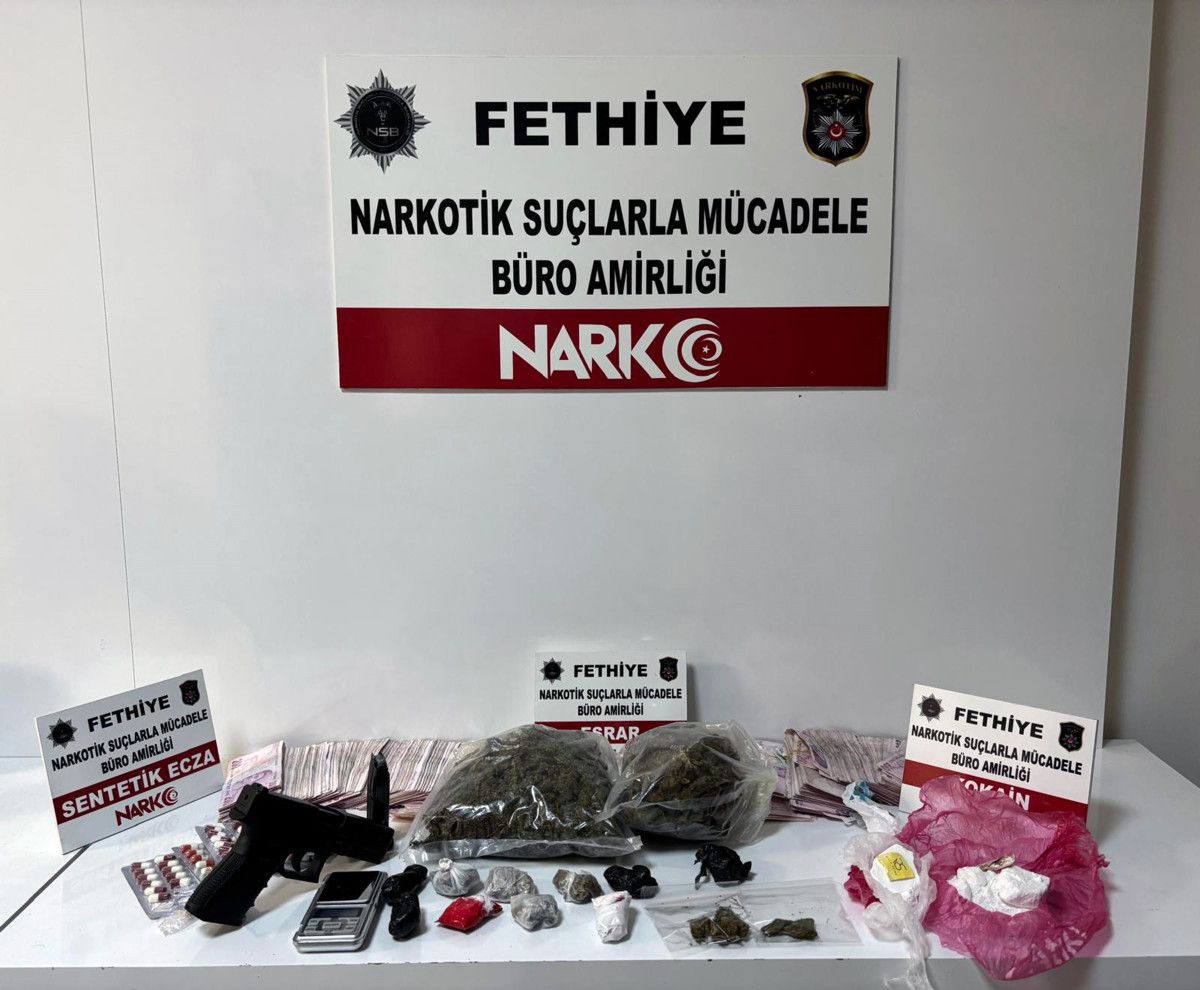 Yapılan operasyonlarda, 843 gram esrar, 166 gram skunk, 153 gram kokain, 68 gram bonzai, 6 gram metamfetamin, 127 adet sentetik ecza, ecstasy, hassas terazi, ruhsatsız tabanca ve suçtan elde edildiği değerlendirilen 208 bin 255 TL para ele geçirildi.