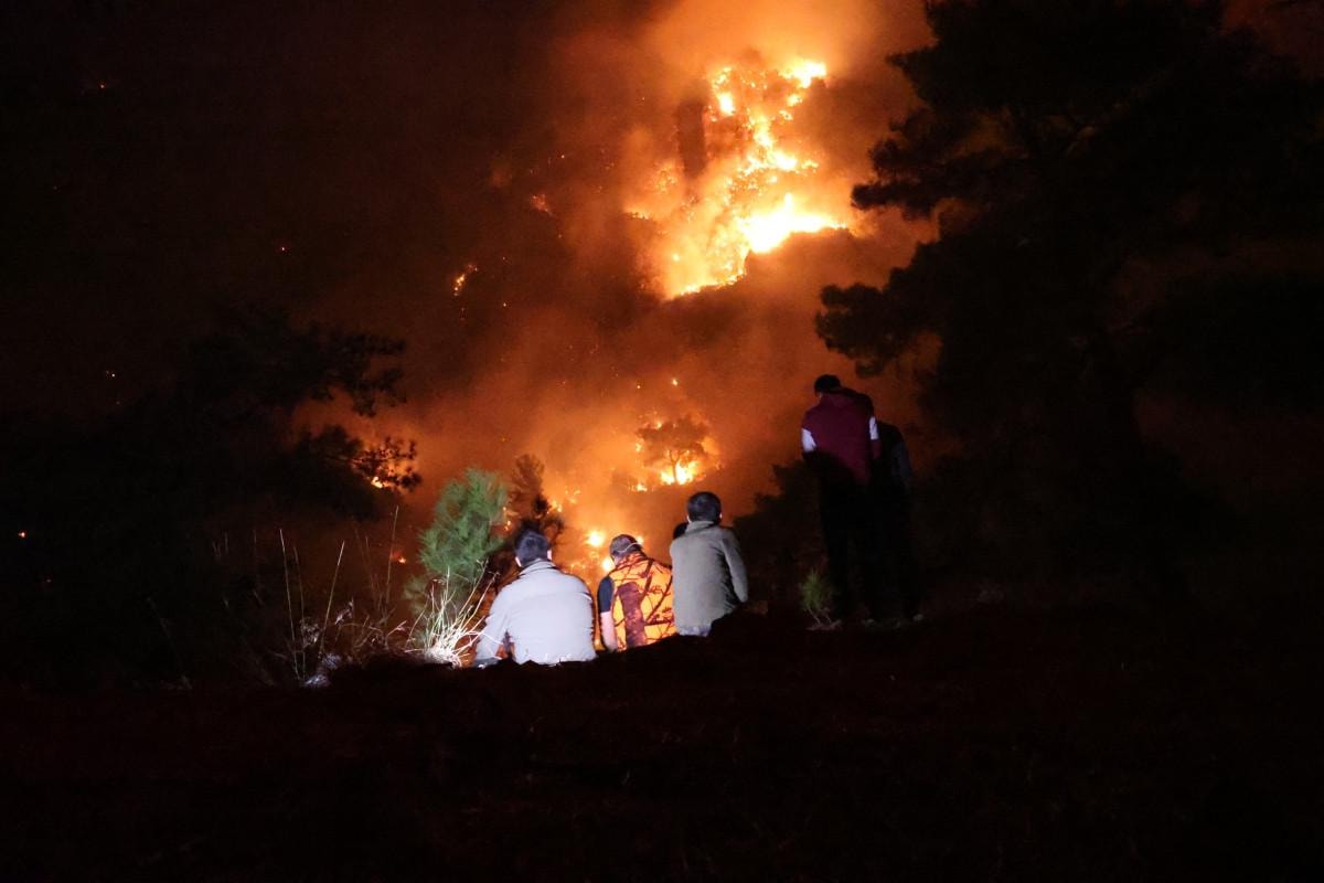 Çam ağaçlarının yoğunlukta olduğu bölgede yükselen alevler, rüzgarın etkisiyle kısa sürede yayılmıştı.