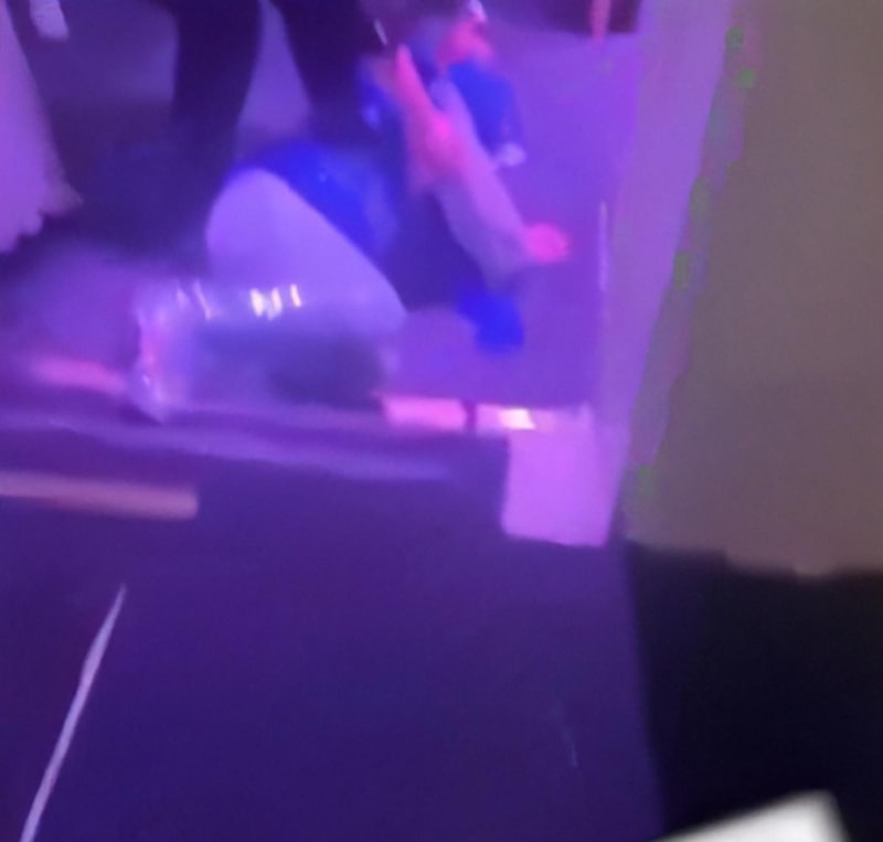 Sahneden inmek üzere hareketlenen Övüç, sahne kenarında ayağının takılması sonucu yere düştü.