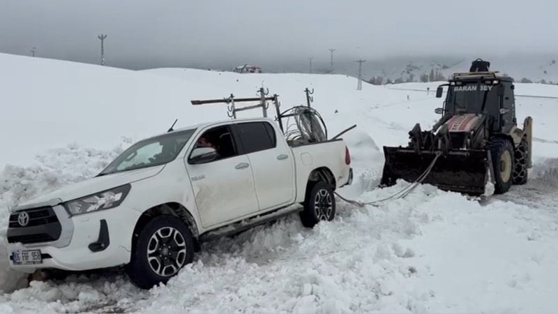 Yoğun yağış nedeniyle yolda kalan bazı araçlar da ekiplerin çalışması sonucu bulundukları yerden çıkarıldı.