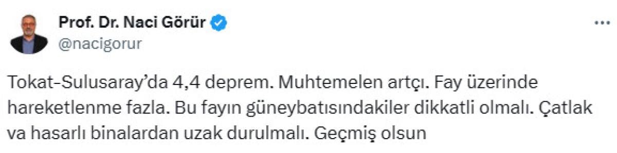 4.4 büyüklüğündeki artçı depremin ardından bir paylaşım yapan Görür, fay üzerinde hareketlenmenin fazla olduğuna dikkat çekti.