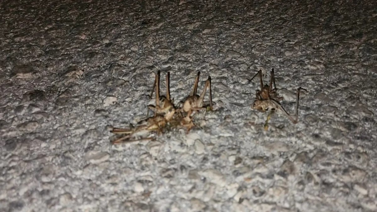 Palu ilçesinde yüzlerce çekirge bir anda yola akın etti.
