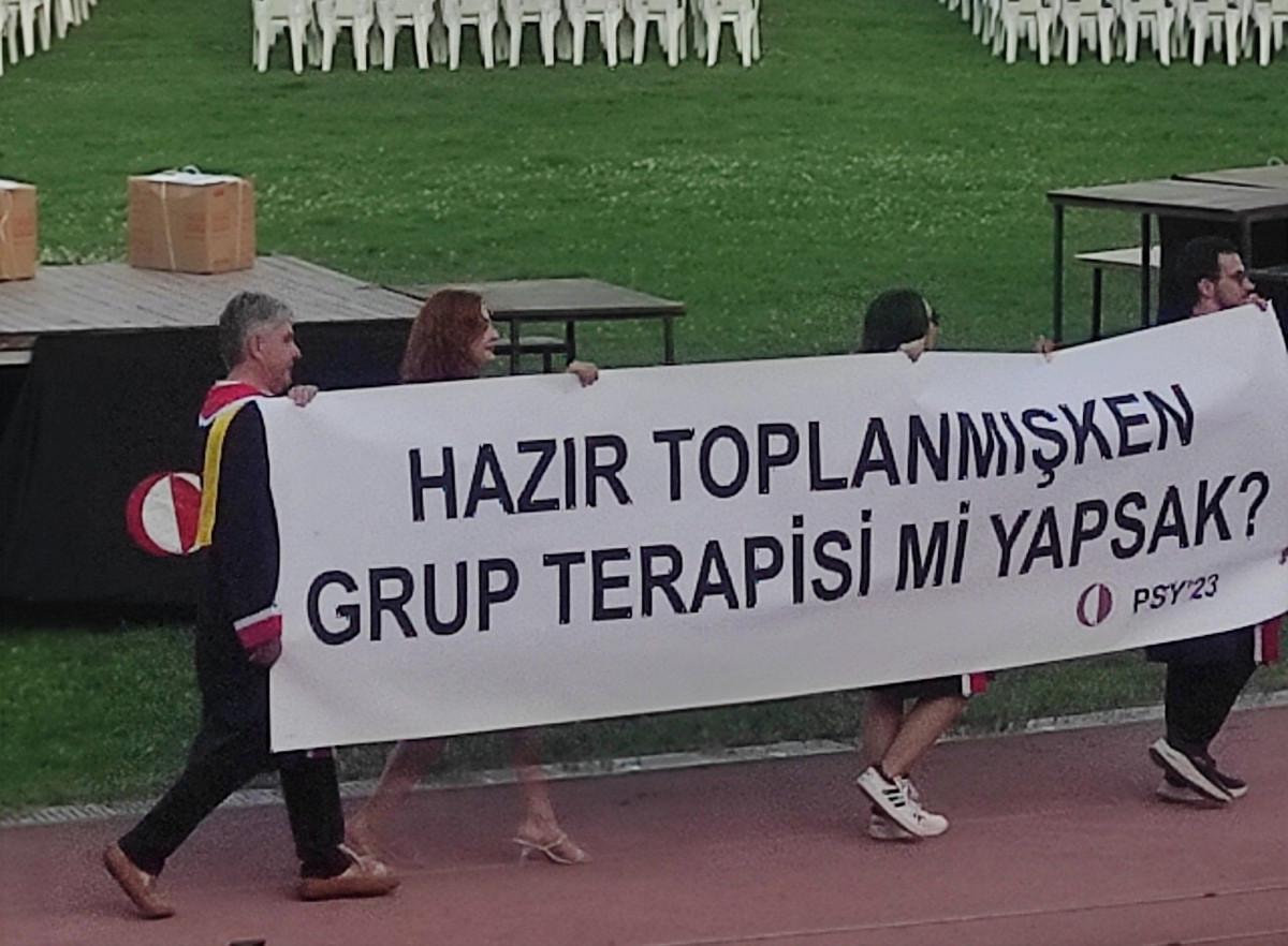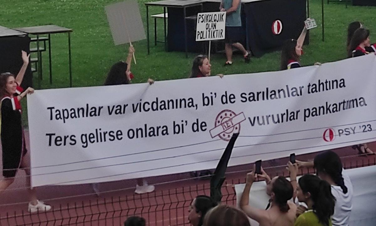 Mezun öğrencilerden yine vasat esprili pankartlar