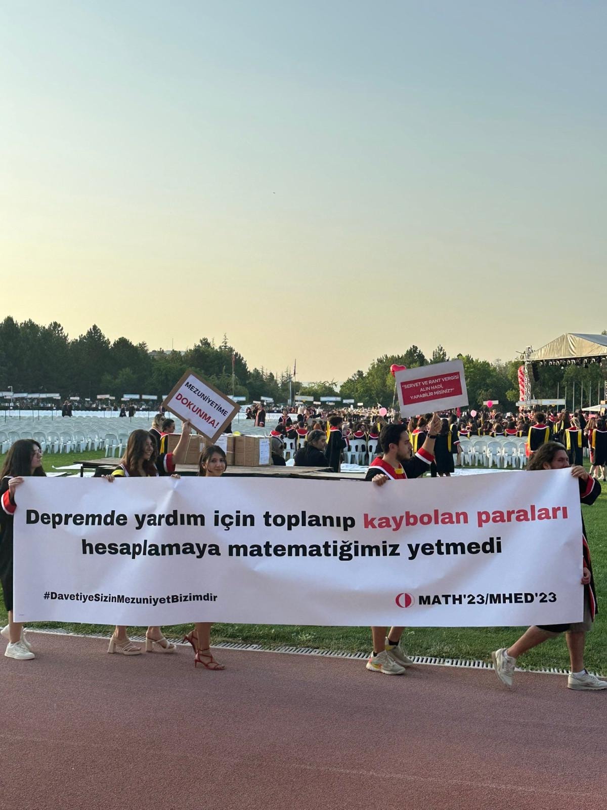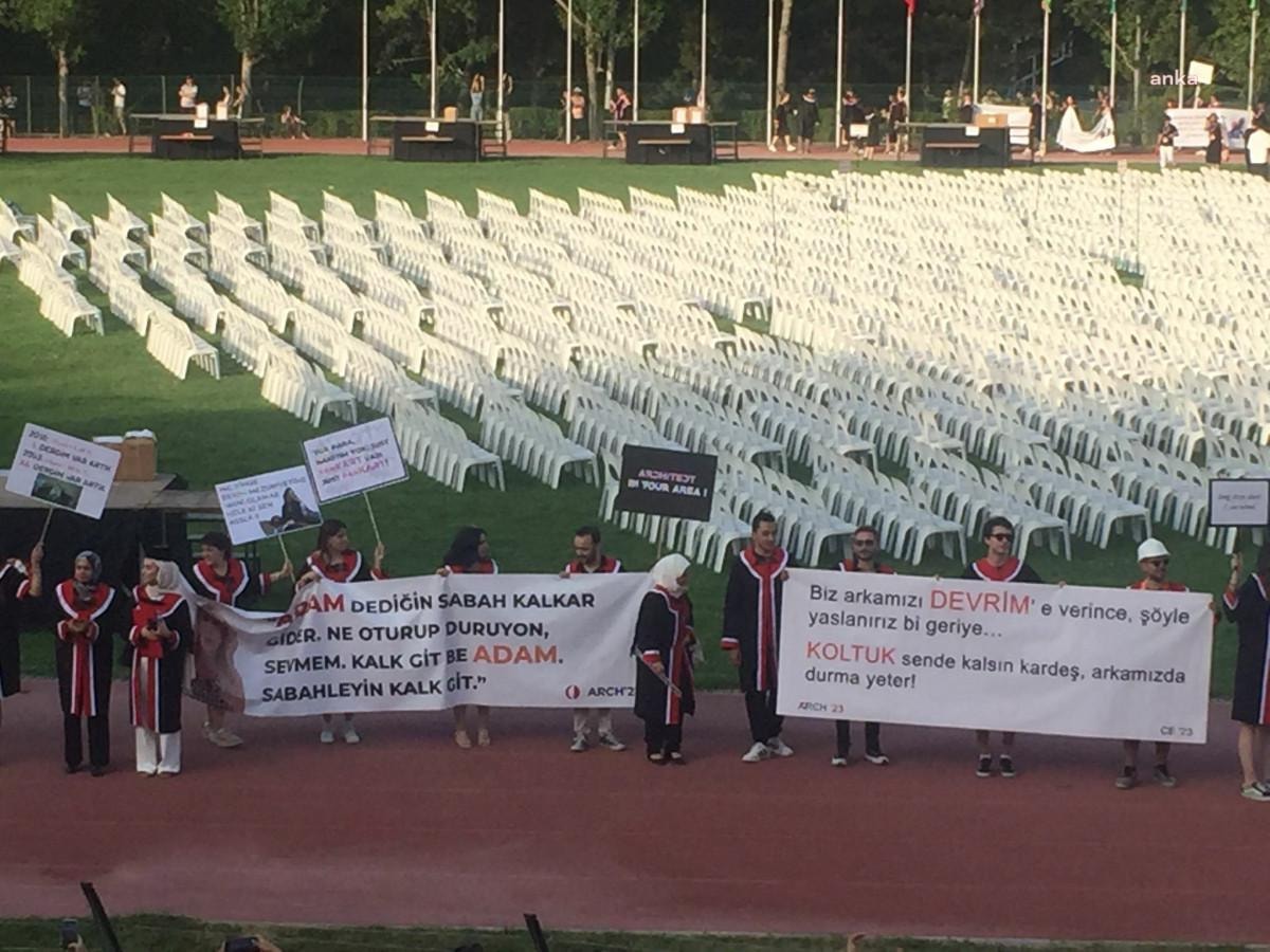 Rektörlük, yürüyüşte taşınacak pankartların kontrol edileceğini ve alana ülke bayrakları haricinde bayrak alınmayacağını duyurmuştu. Stadyumdaki yürüyüşe davetiye şartı getirilmiş, daha sonra bu karar mezunlar için esnetilmişti.