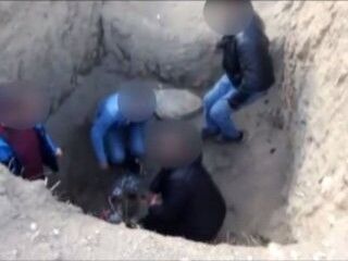 Bu sırada ekipler, boş bir arazide çukur içerisinde birilerinin olduğunu fark etti.
