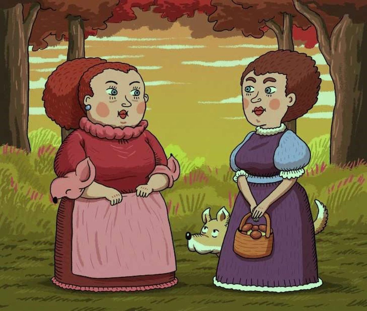 Kadınlardan birinin yanında bir köpek var. Ancak yalnız değil.