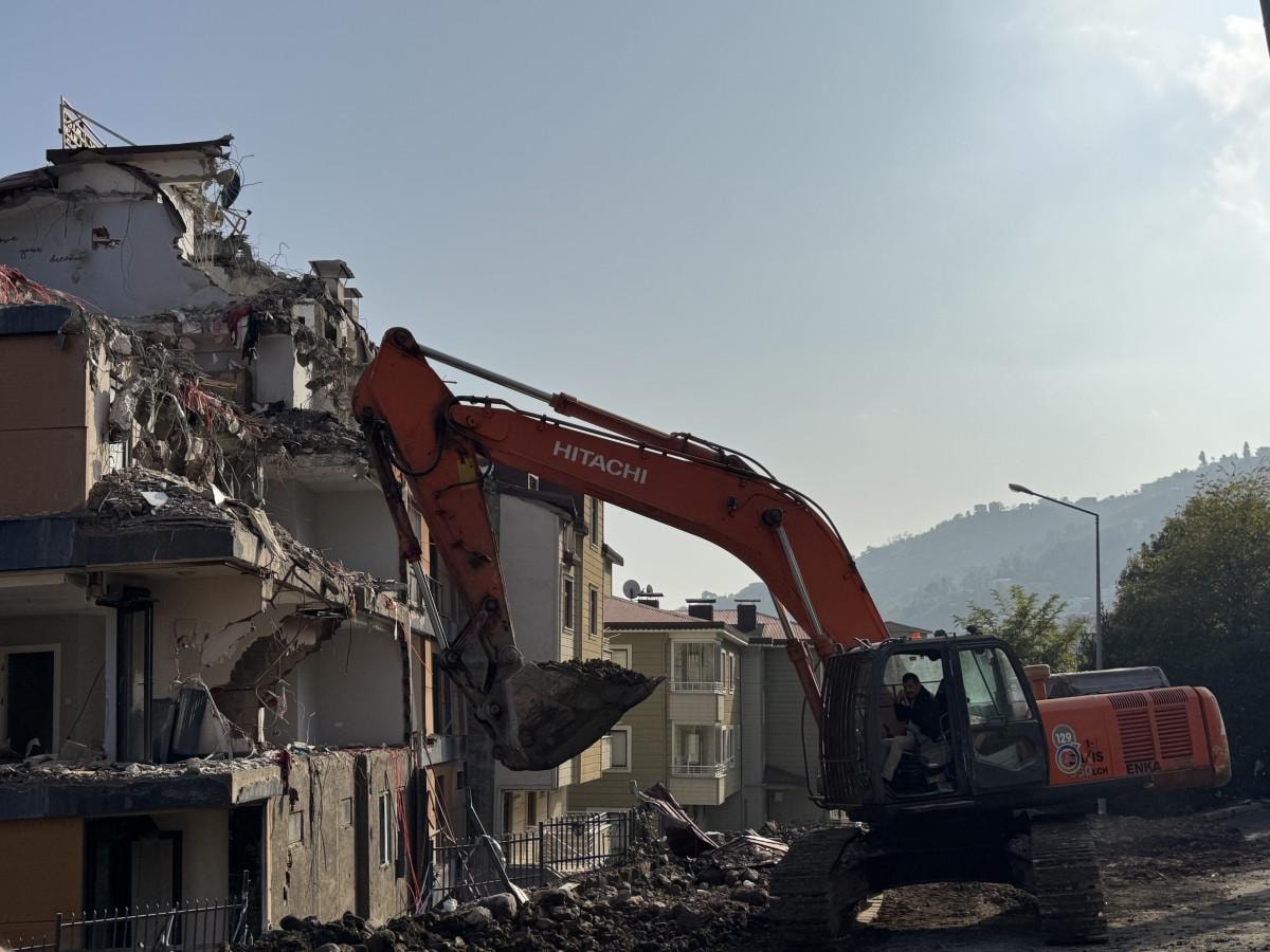 - Ordu'da, temel kazısı sonrası zemindeki kayma nedeniyle hasar gören 5 katlı bina yıkılıyor.