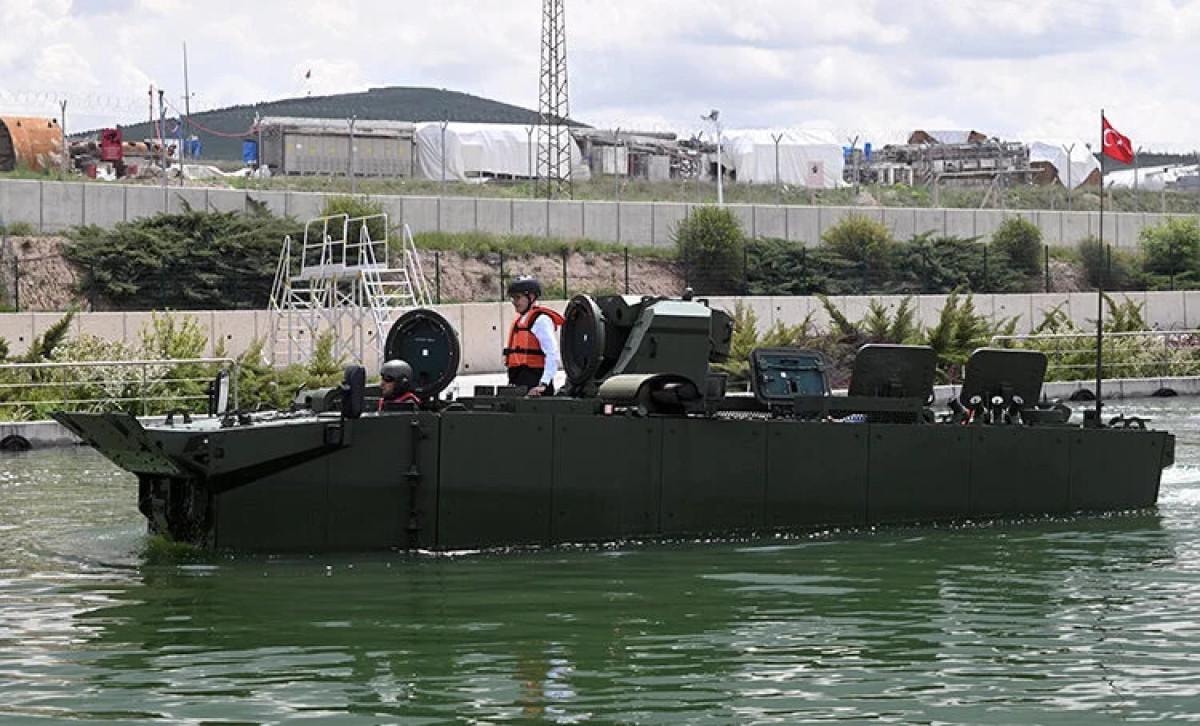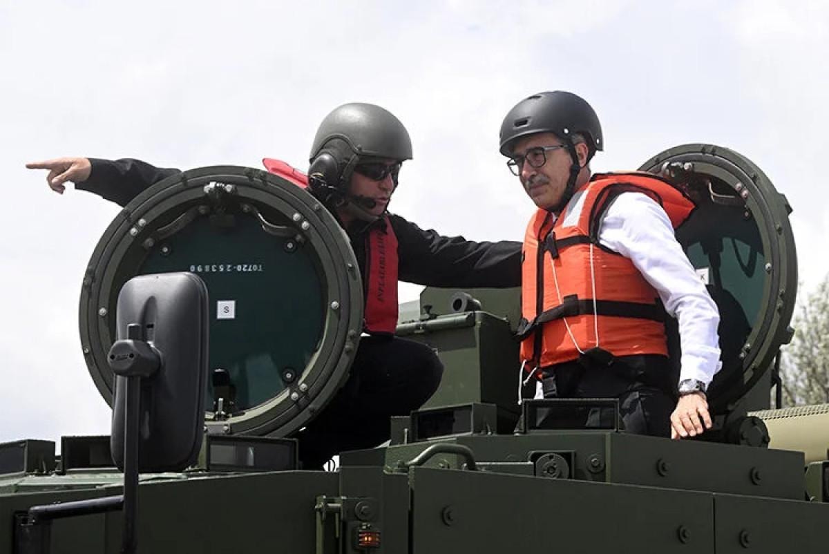 Savunma Sanayii Başkanı Demir de araçla test havuzuna girdi.