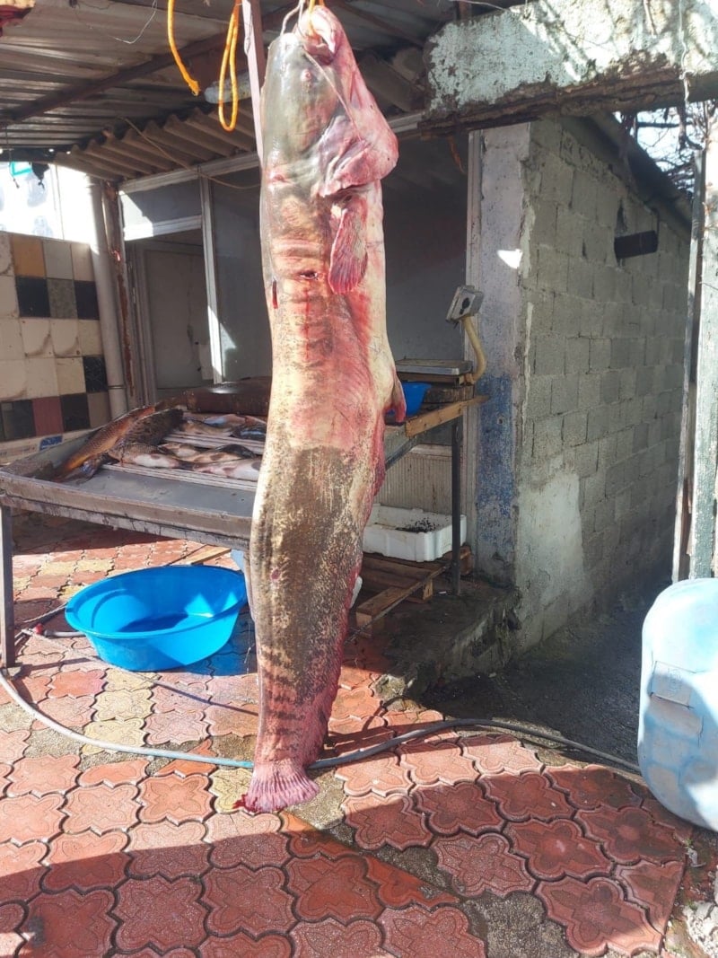 Osmaniye’nin Düziçi ilçesinde balıkçılık yapan Ali Dağlı ve arkadaşları, Aladağ bölgesinde akşam saatlerinde attıkları ağları sabah erken saatlerde topladı. Ağlarda dört büyük balık olduğunu fark eden ekip, en büyük balığın 2 metre boyunda ve 98 kilogram ağırlığında olduğunu belirledi.