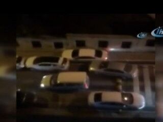 Çalıntı otomobille kapalı olan sokakta köşeye sıkışan oto hırsızları, kaldırımdan kaçmaya çalışınca arkadan gelen 2 polis tarafından aracın lastiklerine ateş edilerek durdurulmak istendi.