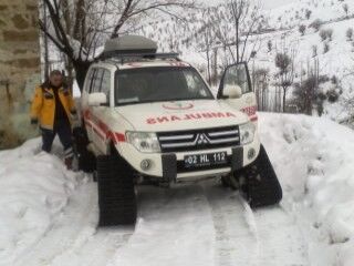 Kar kalınlığının yarım metreye kadar ulaştığı köye ulaşmak için yola çıkan paletli ambulans, 15 kilometrelik yolu zorlu bir mücadelenin ardından aştı.